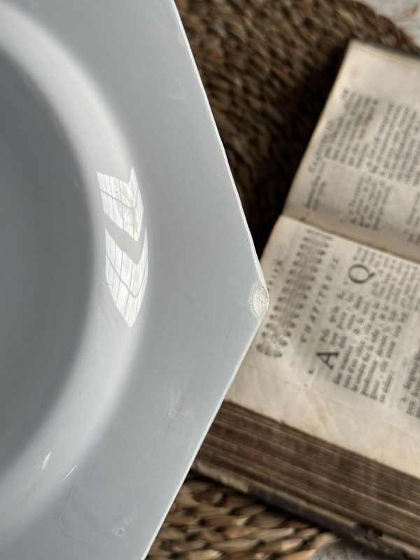 10. Assiette plate octogonale Montereau perle, bleuté – début XIXème