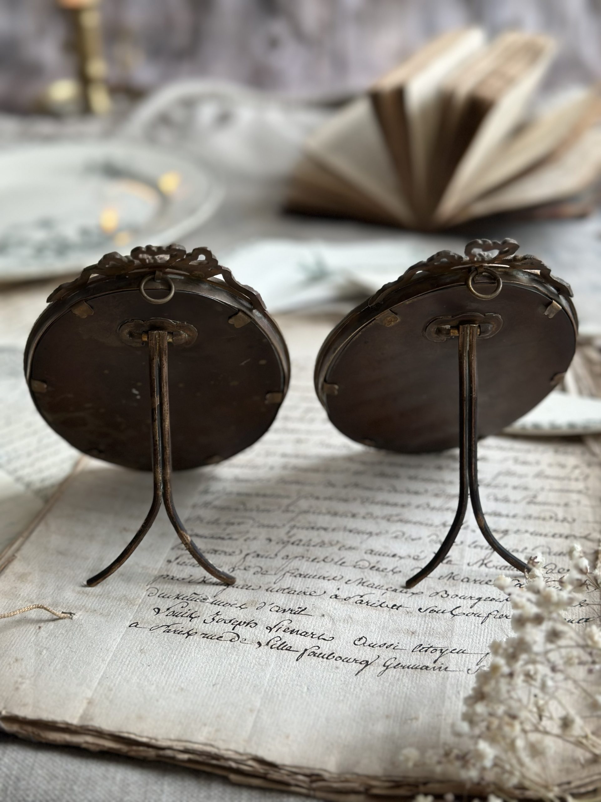 Cadre ovale en bronze et terre de fer Choisy le Roi – 2 disponibles , vendu à l’unité