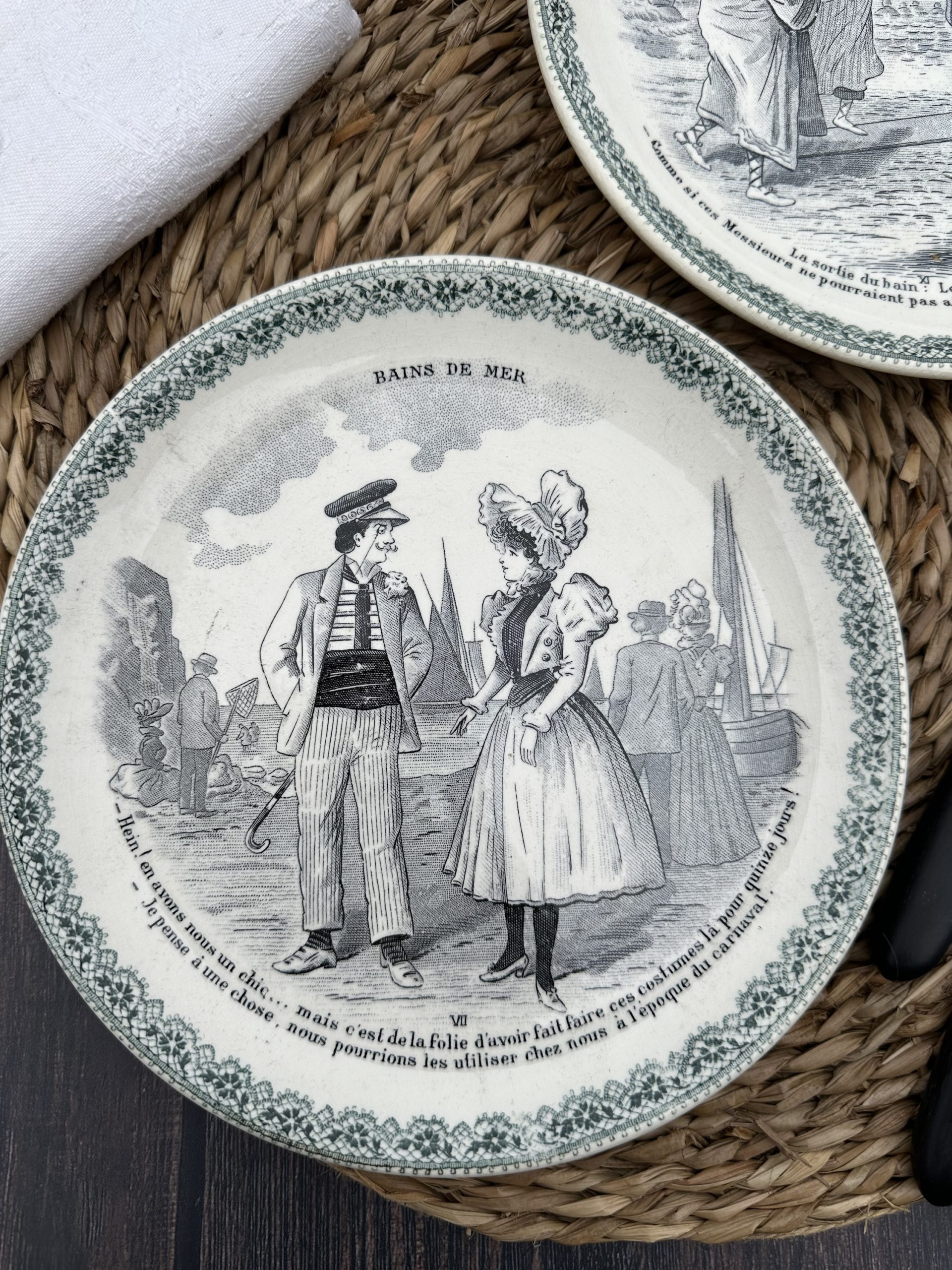 Deux assiettes parlantes Choisy le Roi modèle Bains de Mer, XIXème