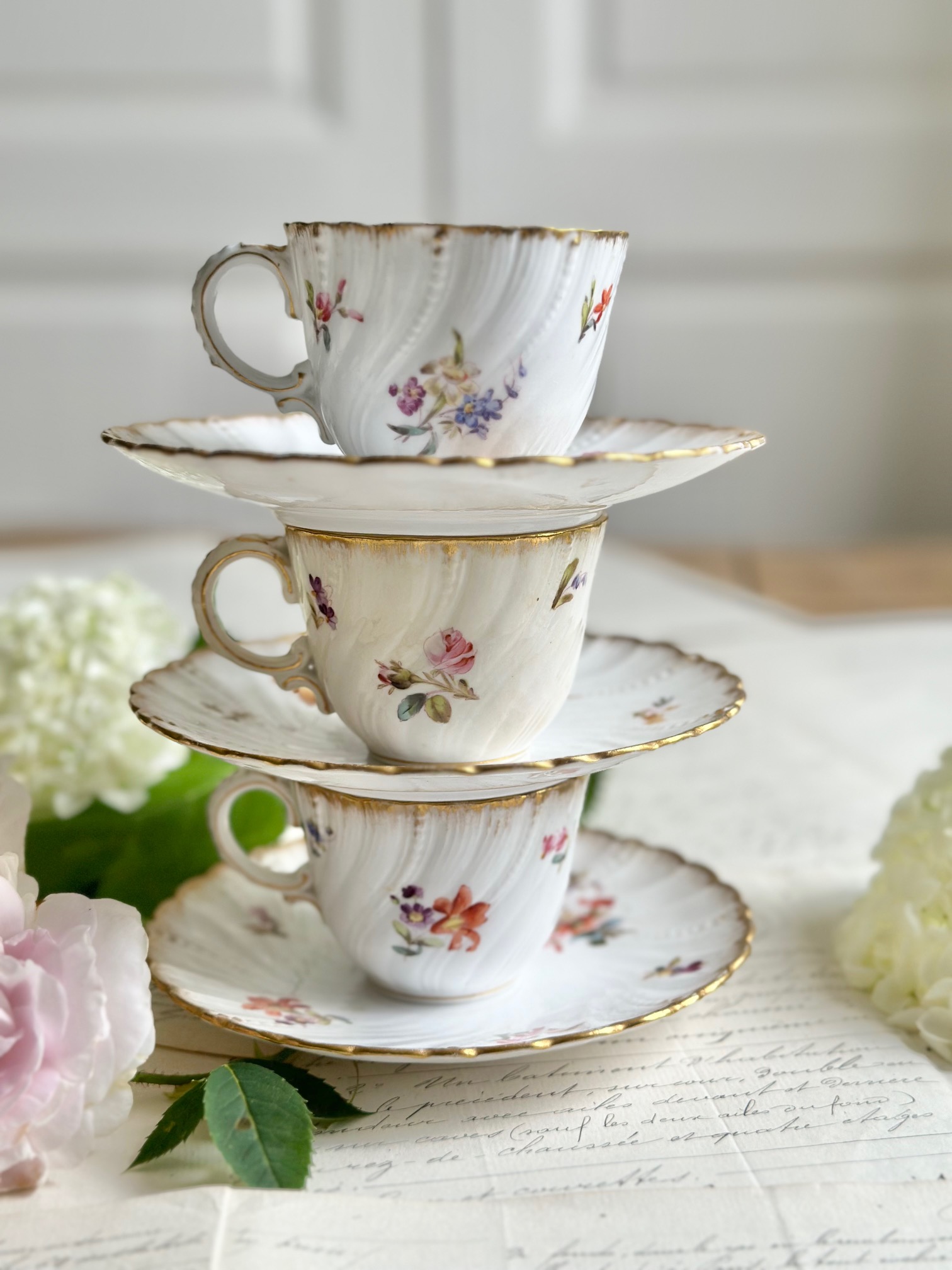 Ensemble de 3 tasses et sous-tasses en porcelaine Sarreguemines