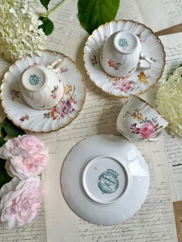 Ensemble de 3 tasses et sous-tasses en porcelaine Sarraguemines