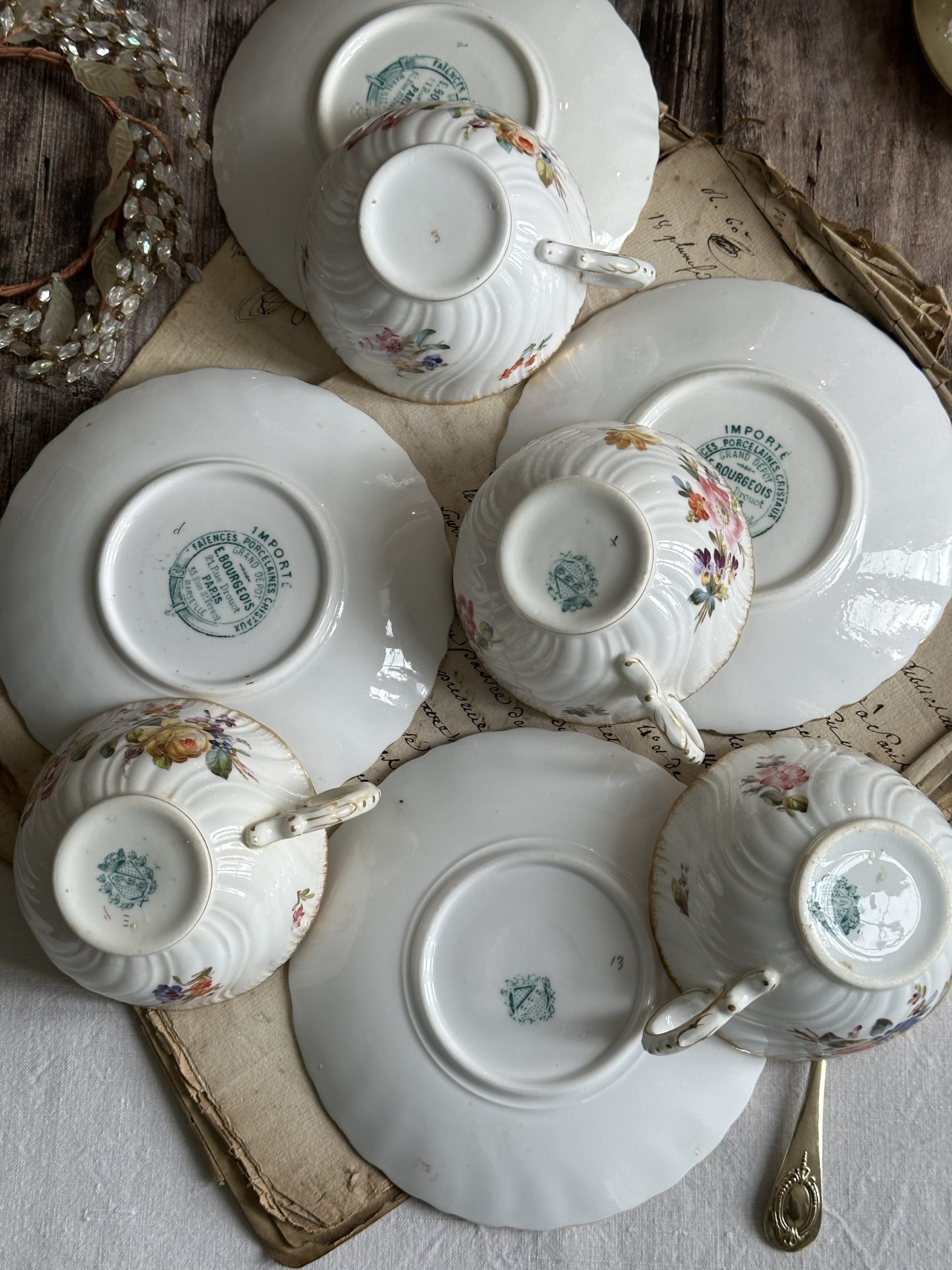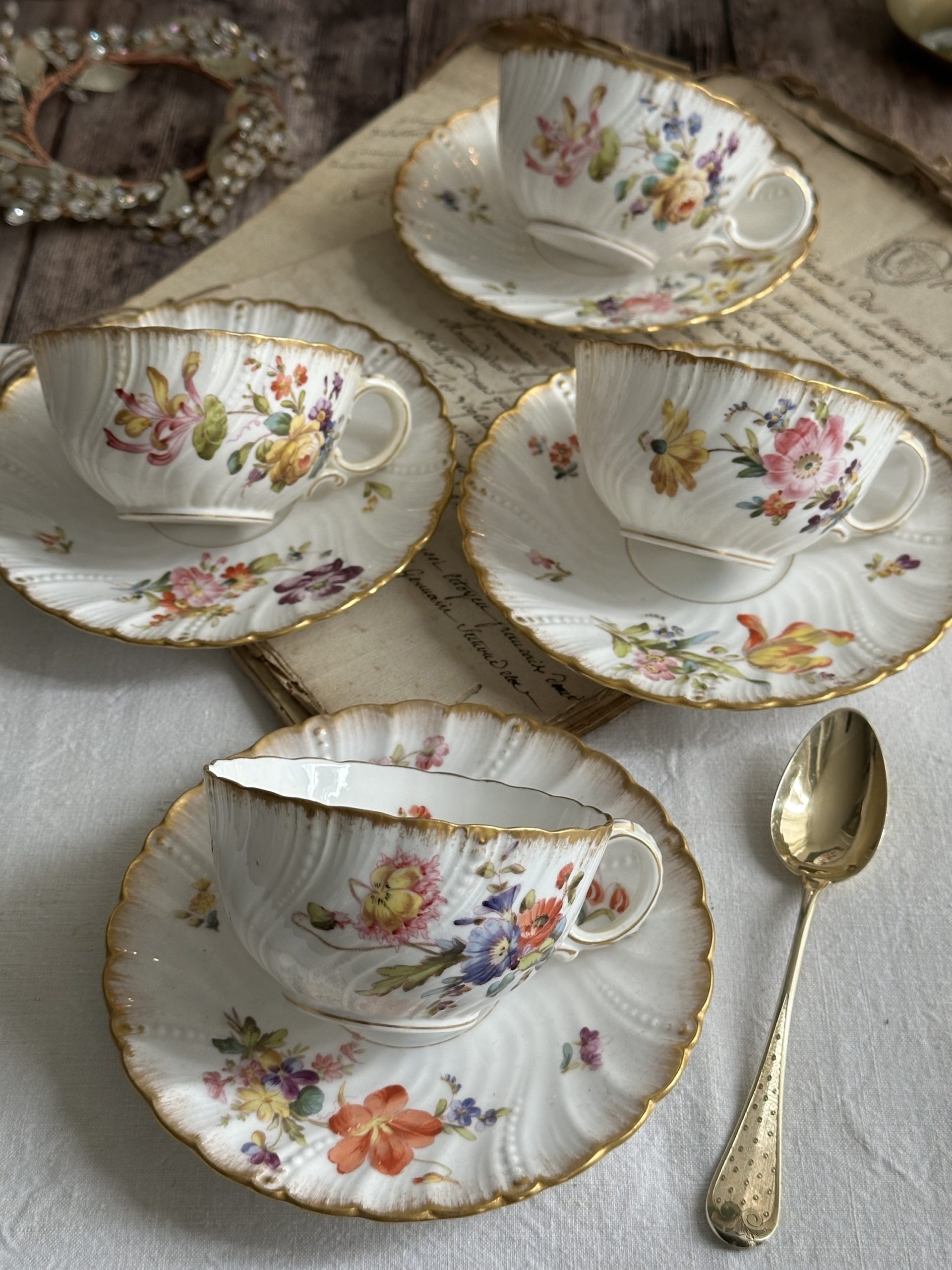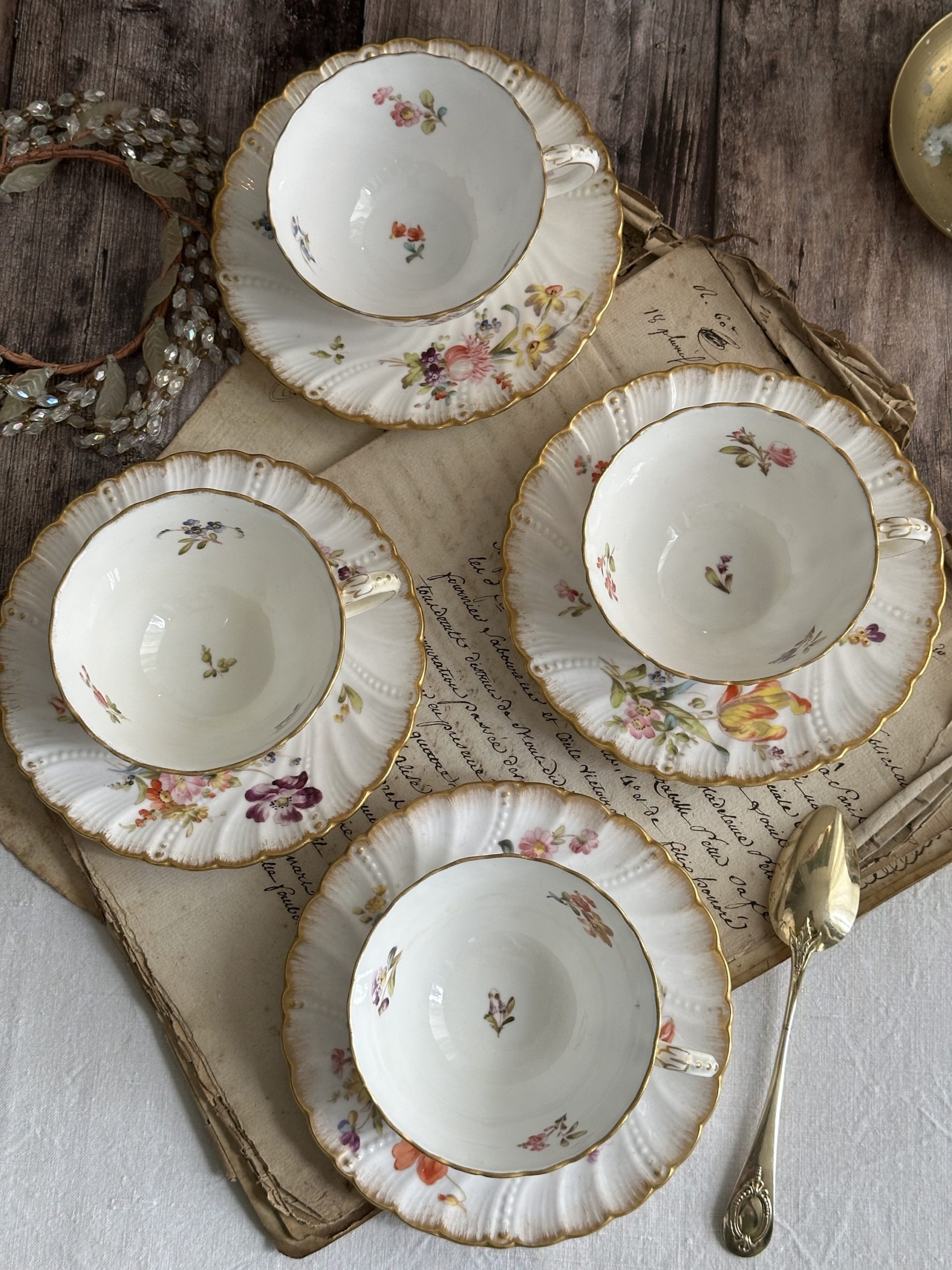 Ensemble de 4 tasses et sous-tasses en porcelaine Sarreguemines, XIXème