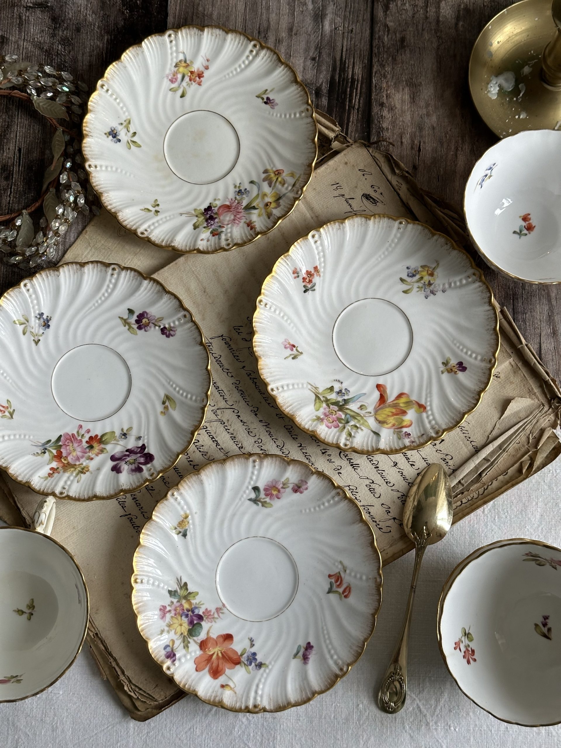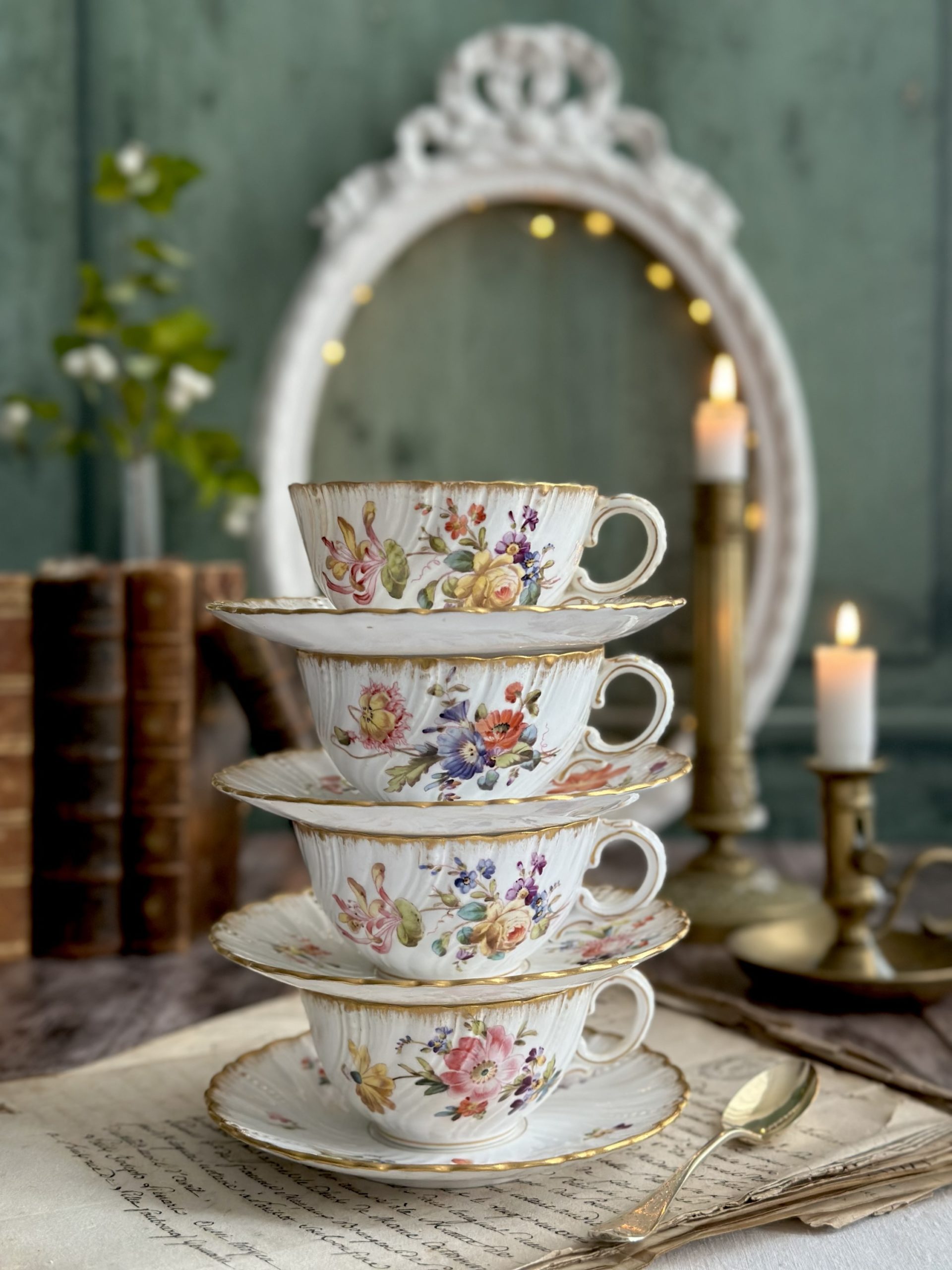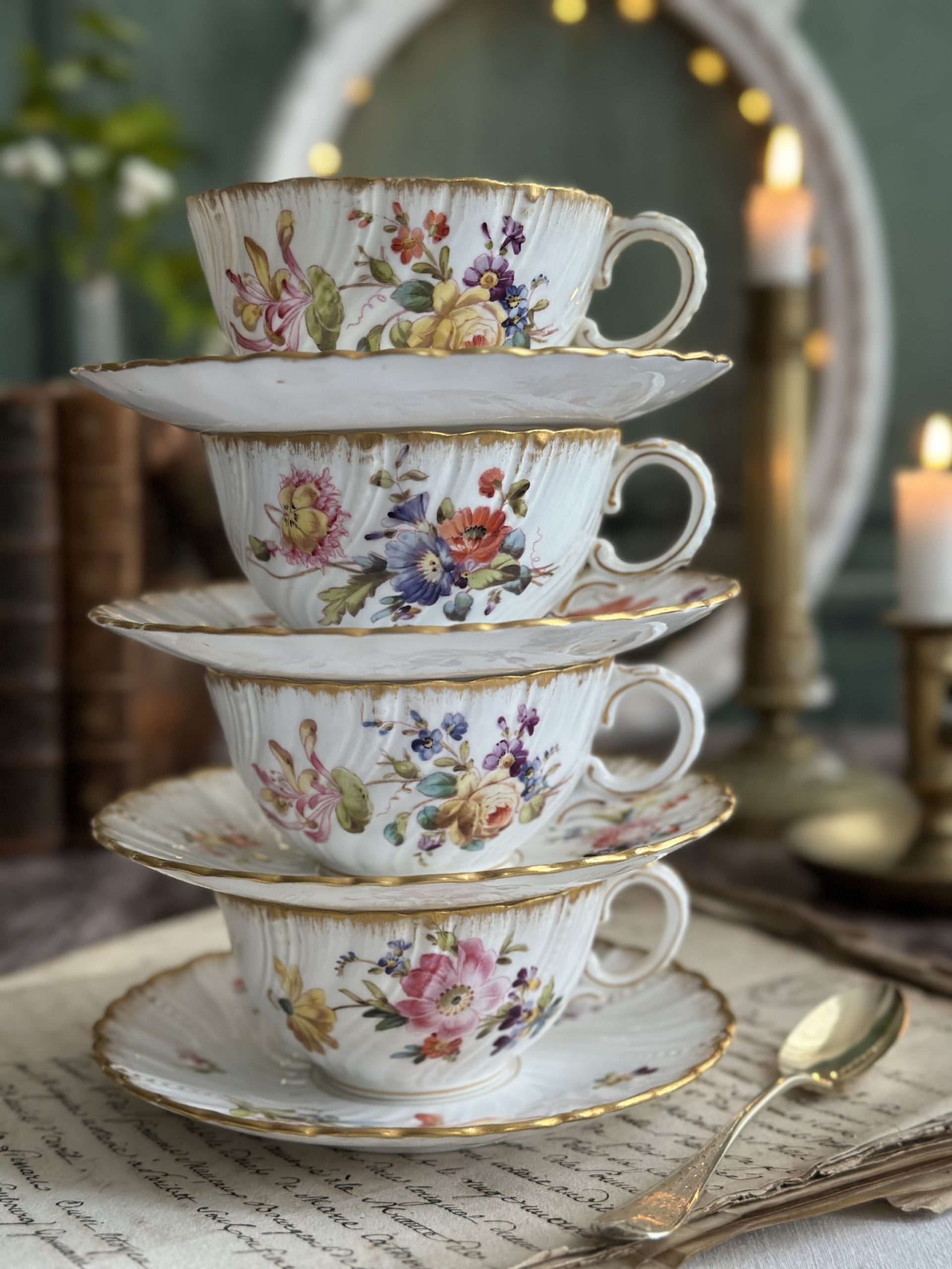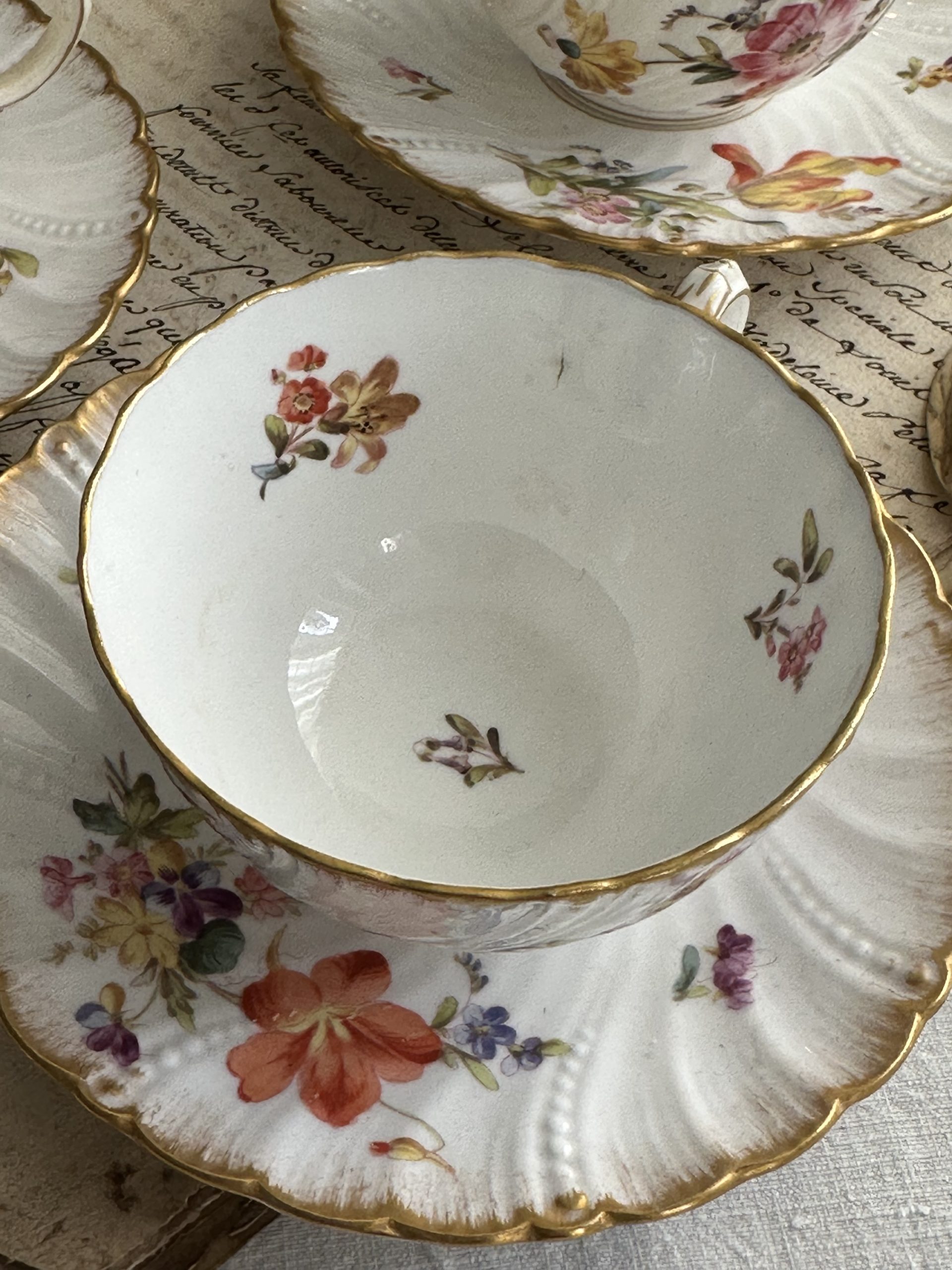 Ensemble de 4 tasses et sous-tasses en porcelaine Sarreguemines, XIXème