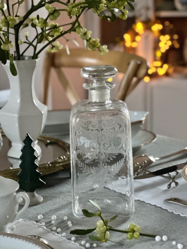 Exceptionnelle carafe à liqueur en verre soufflé bouche, gravée, XIXème