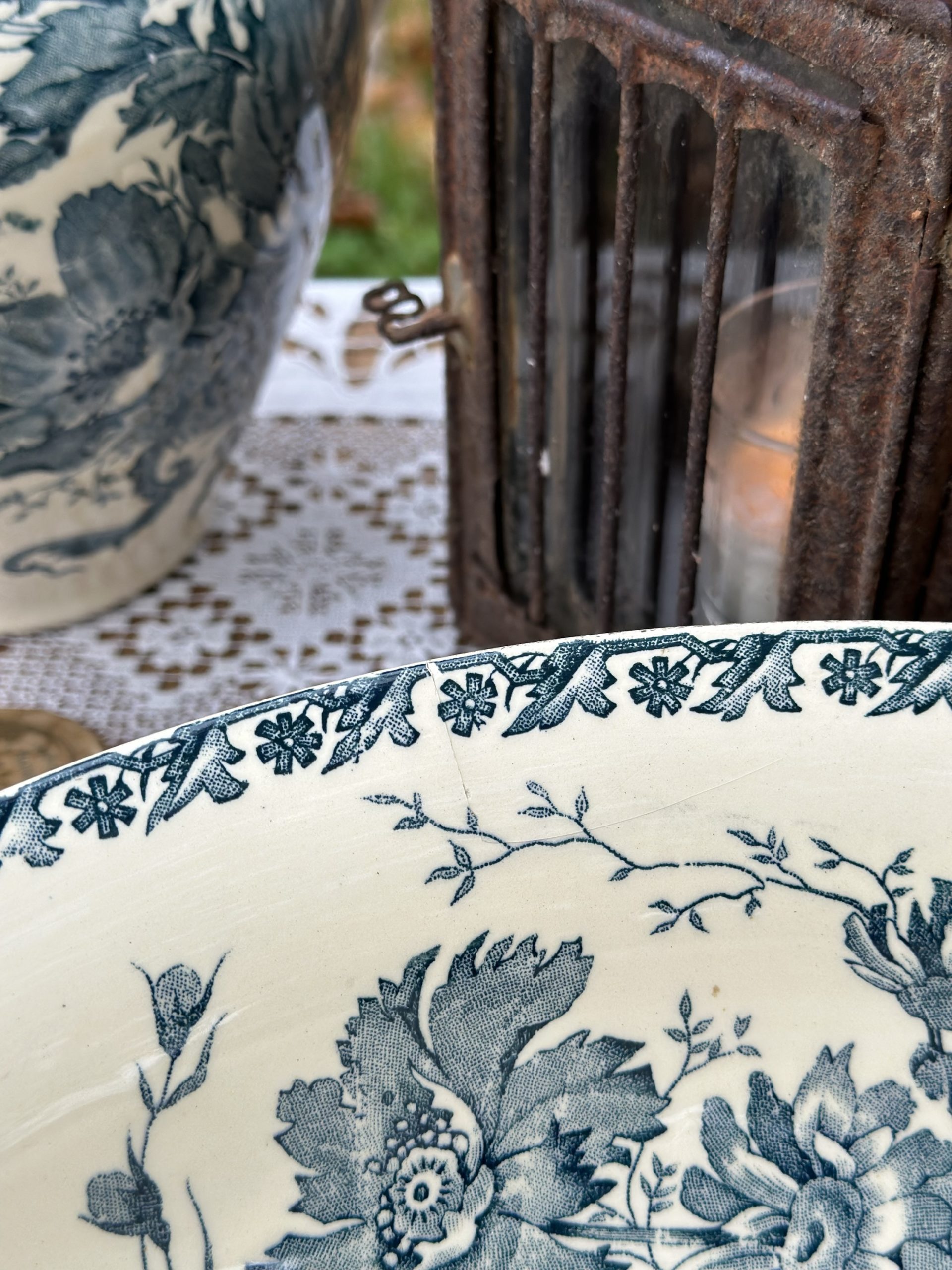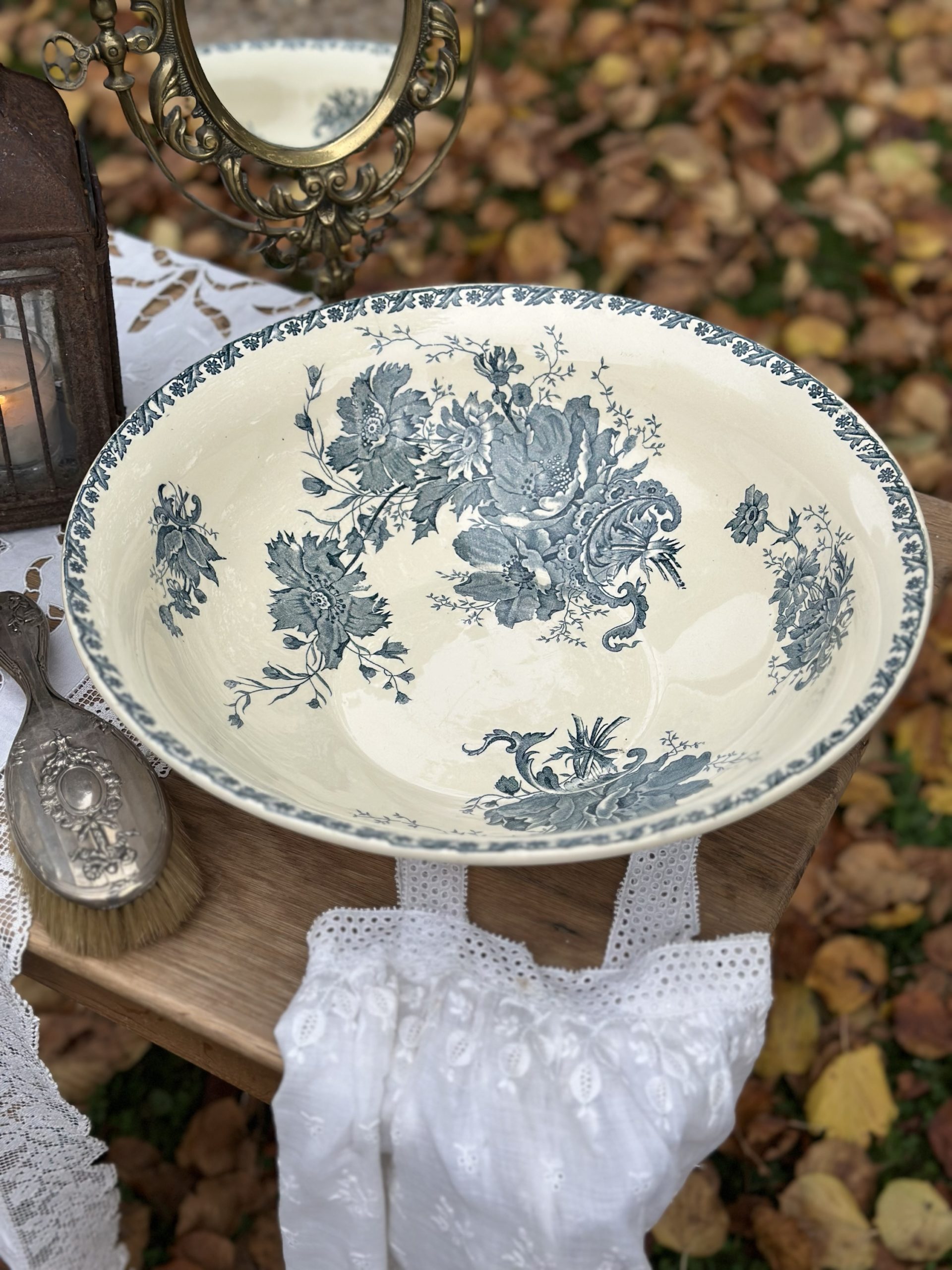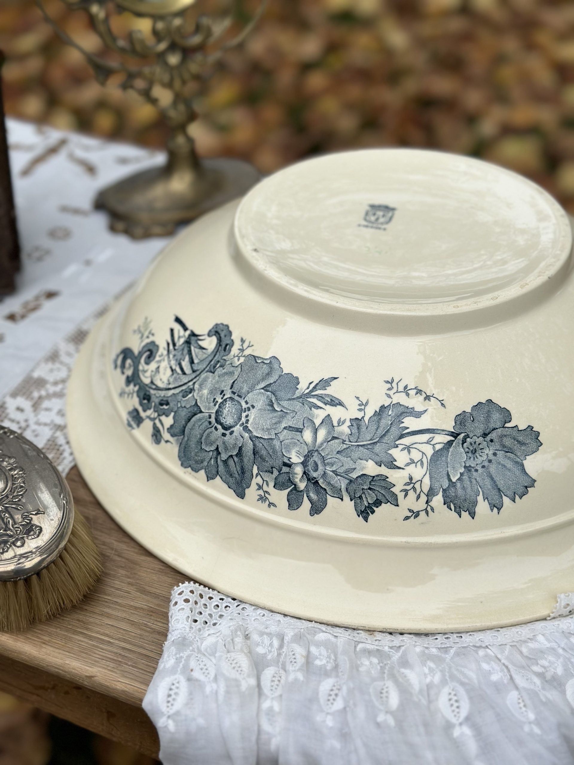 Dimensions vasque: diamètre 38,70cm x hauteur 11cm – à noter un fêle , voir photo