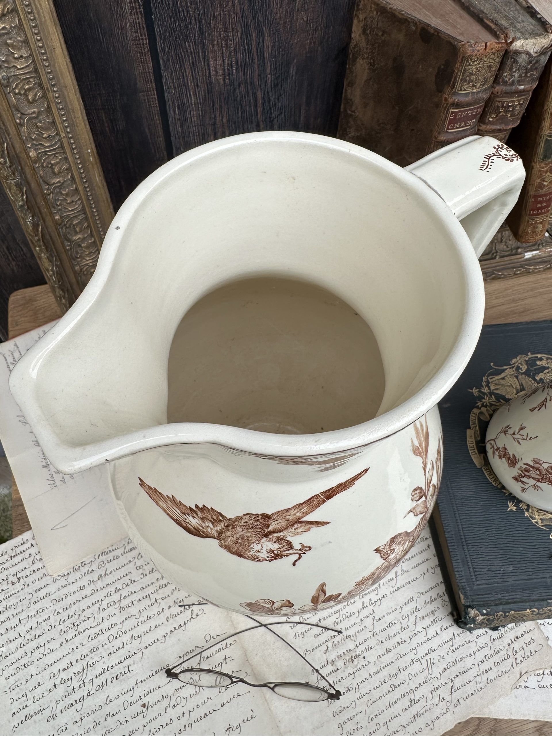 Rare grand broc Creil et Montereau modèle Rêve de Mai