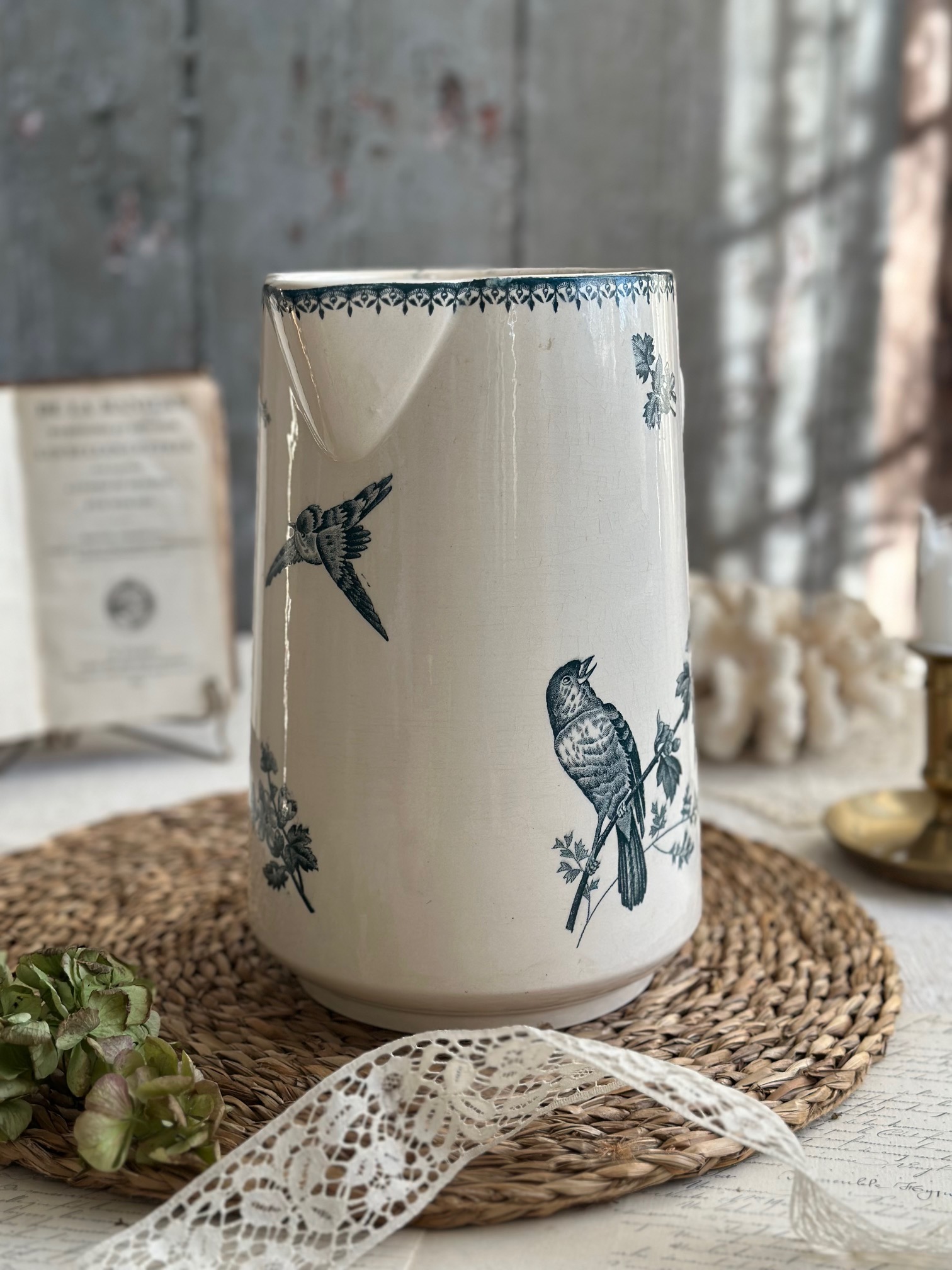Grand broc Longwy modèle Mésange