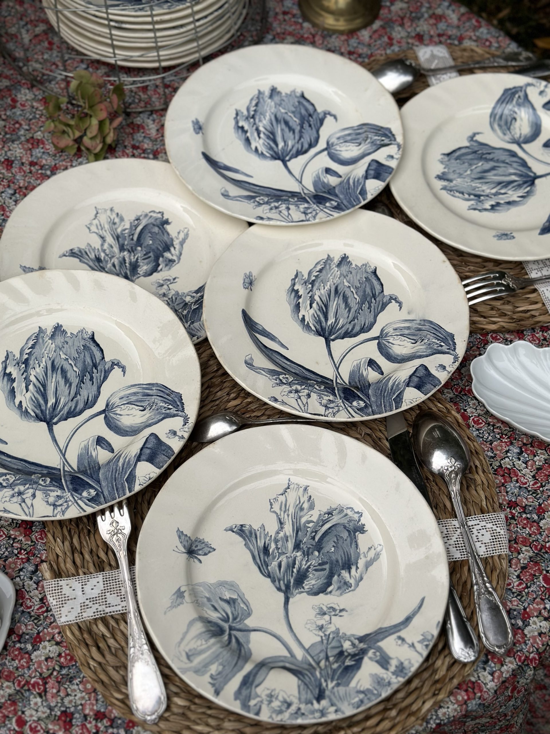I. Suite de 6 assiettes plates Creil et Montereau modèle Tulipes