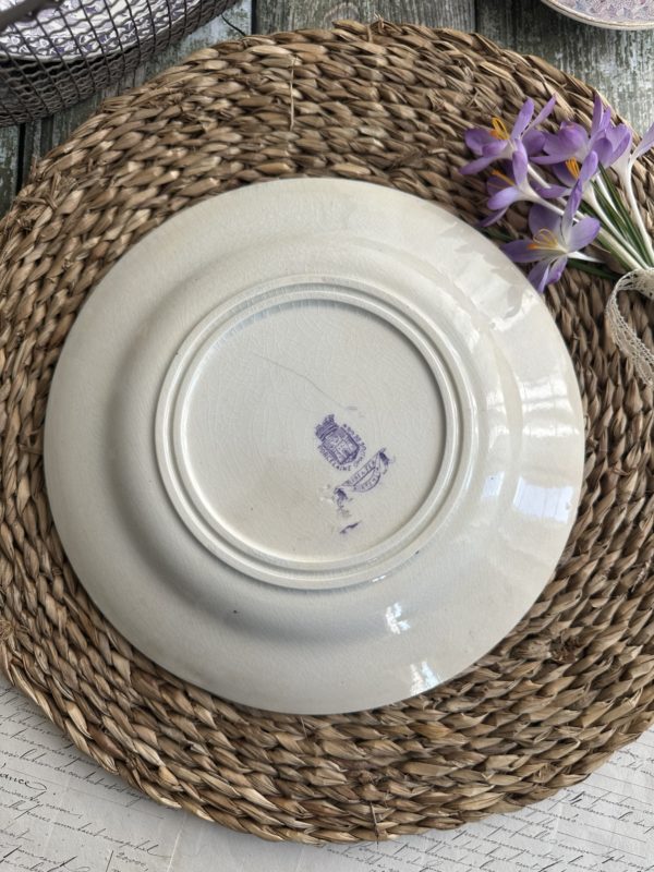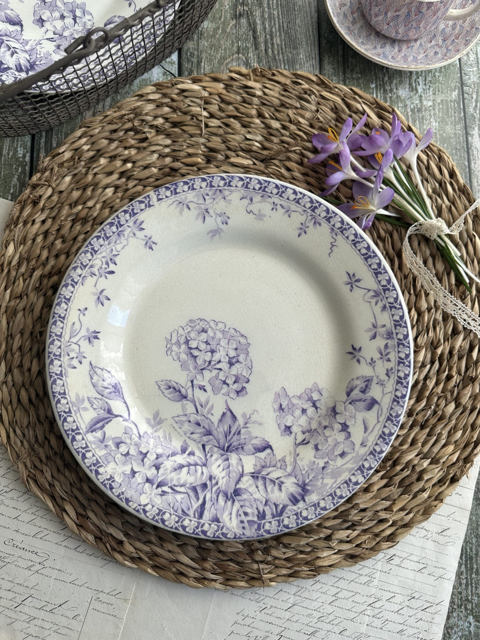II. Rare assiette plate Gien modèle Hortensia, tons violet/mauve