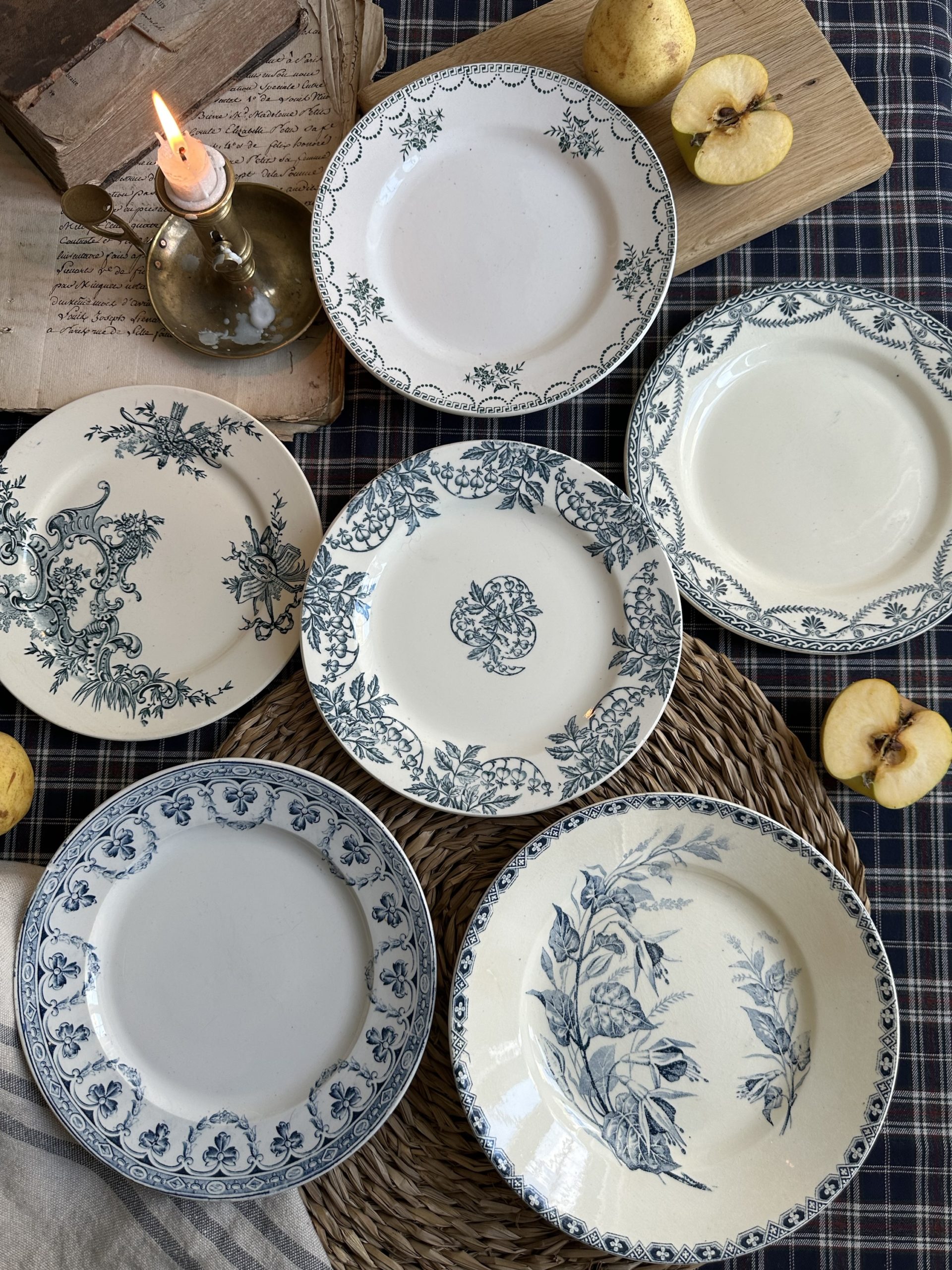 Clairefontaine modèle Chantilly – 20,20cm,  St Amand modèle 427 – 20,50cm, Salins modèle Empire 21,20cm, BFK modèle Régent 20cm, St Amand modèle Santiago 21,20cm (à noter un petit défaut d’origine émaillé), P. F. modèle Marthe 21,90cm