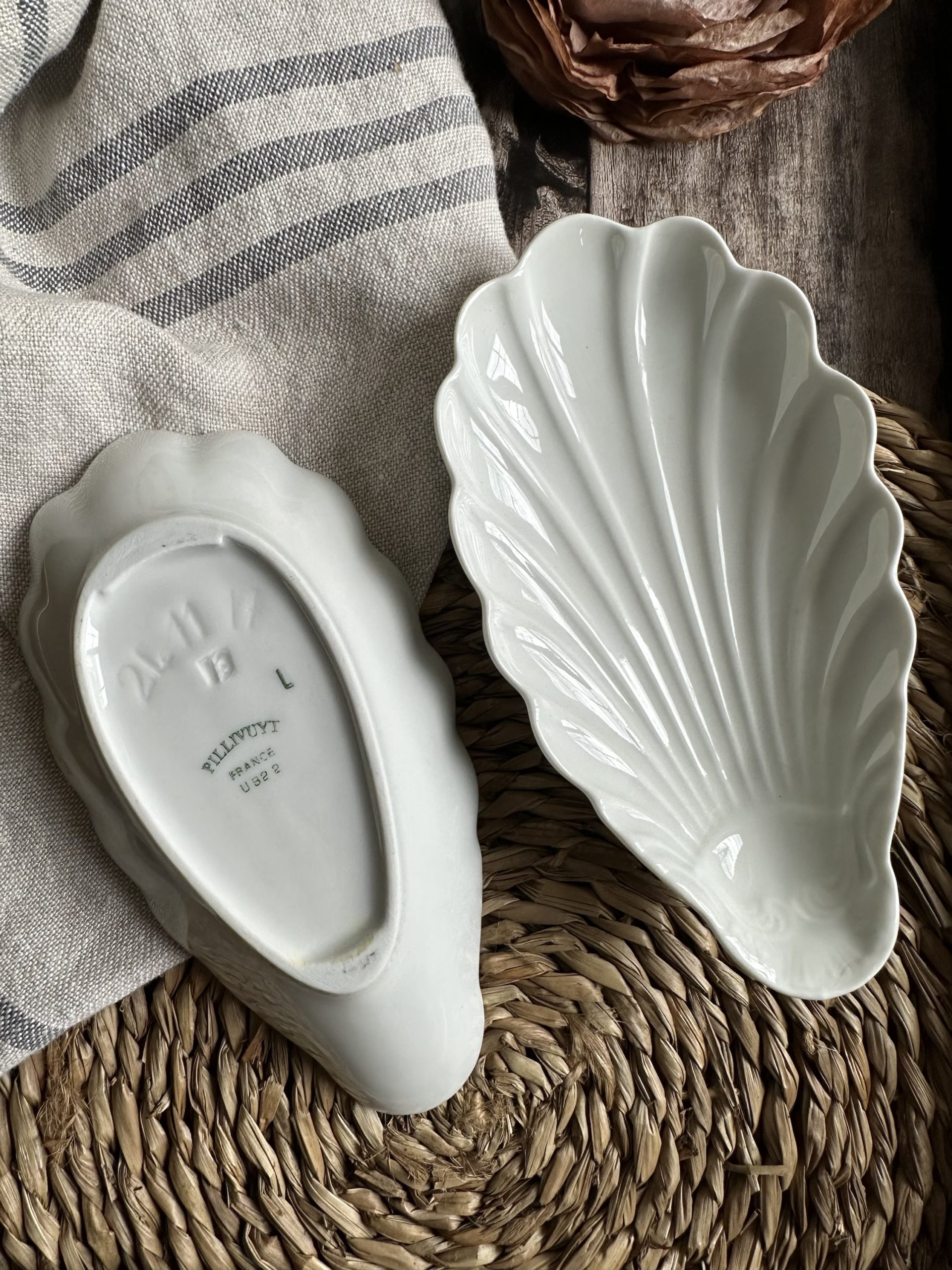 Petit ravier coquillage en porcelaine Pillivuyt – 2 disponibles, vendu à l’unité