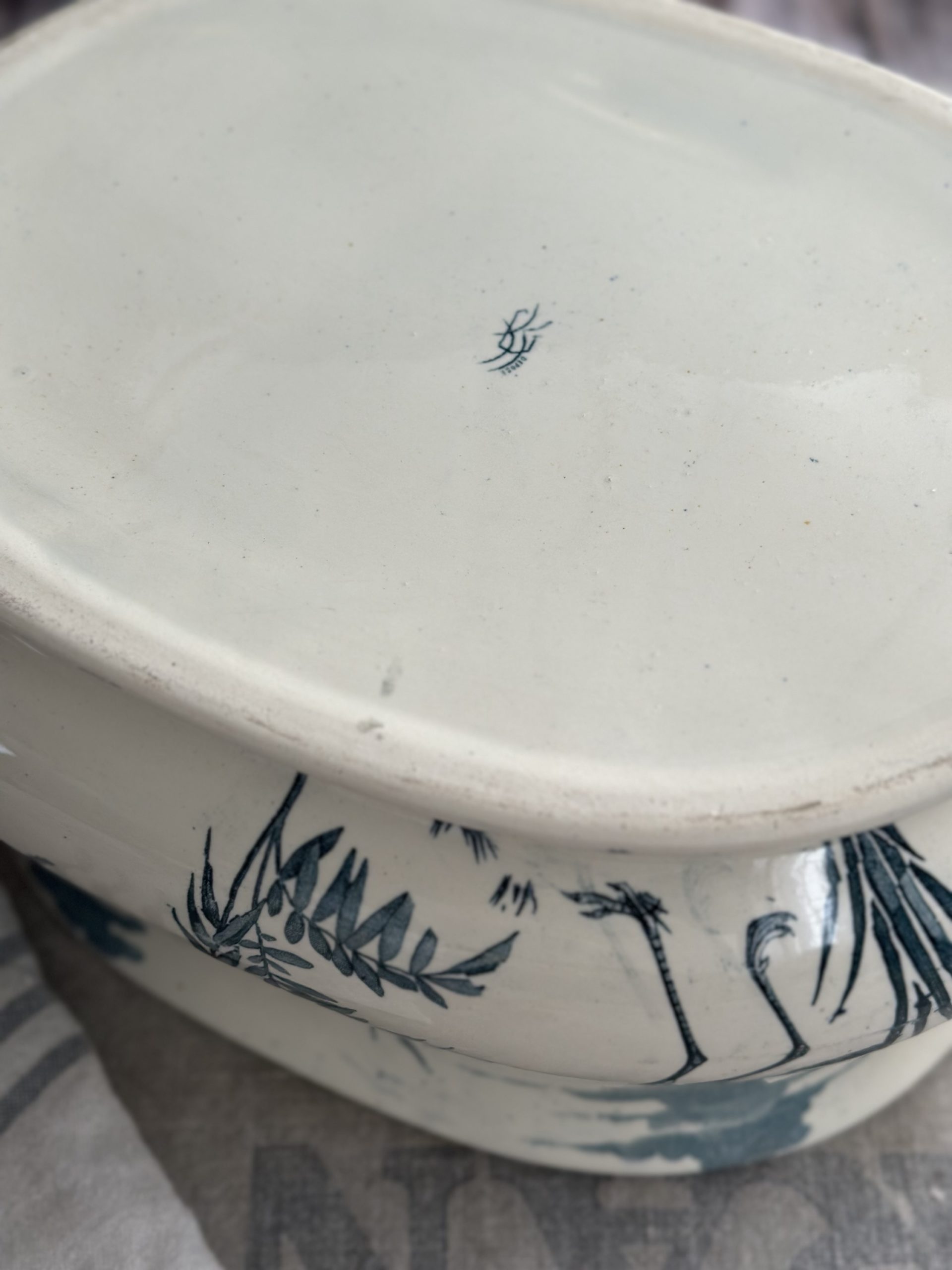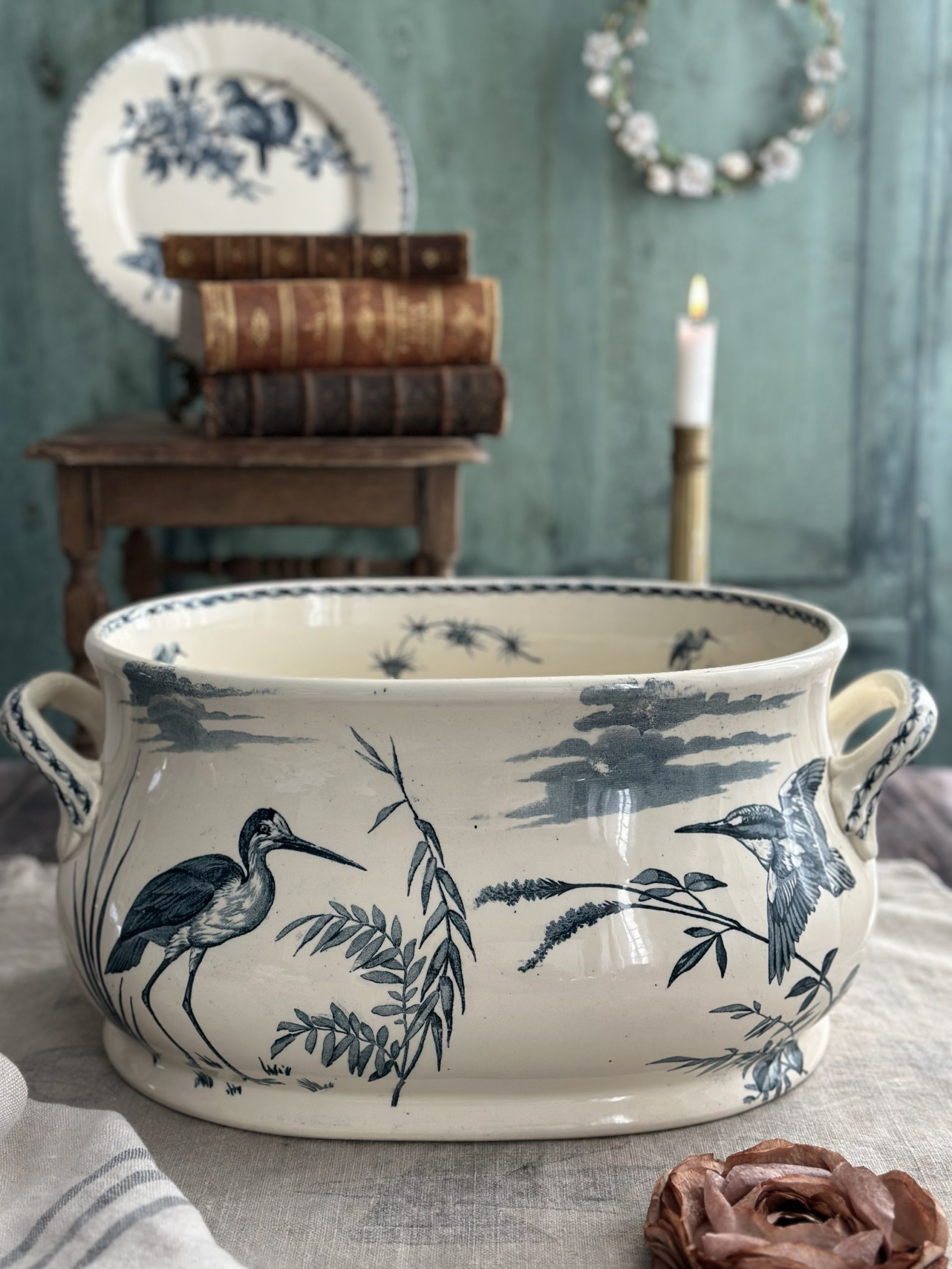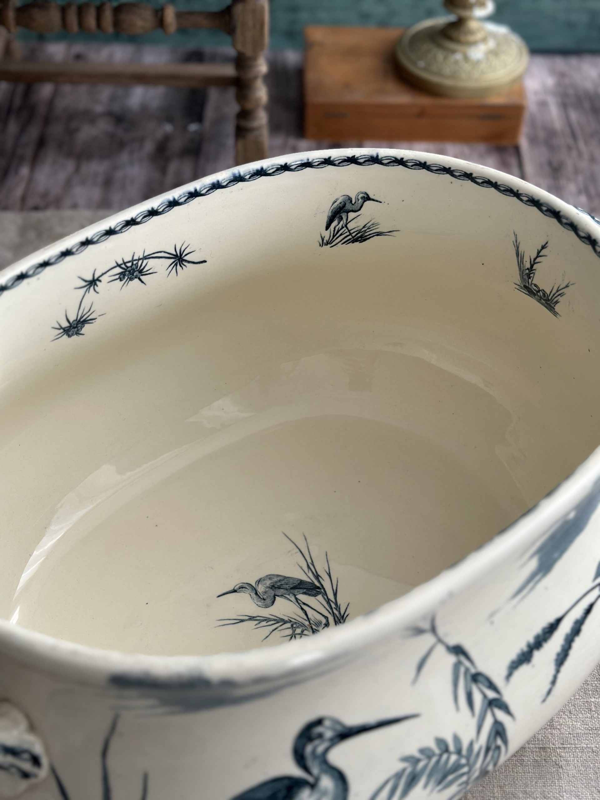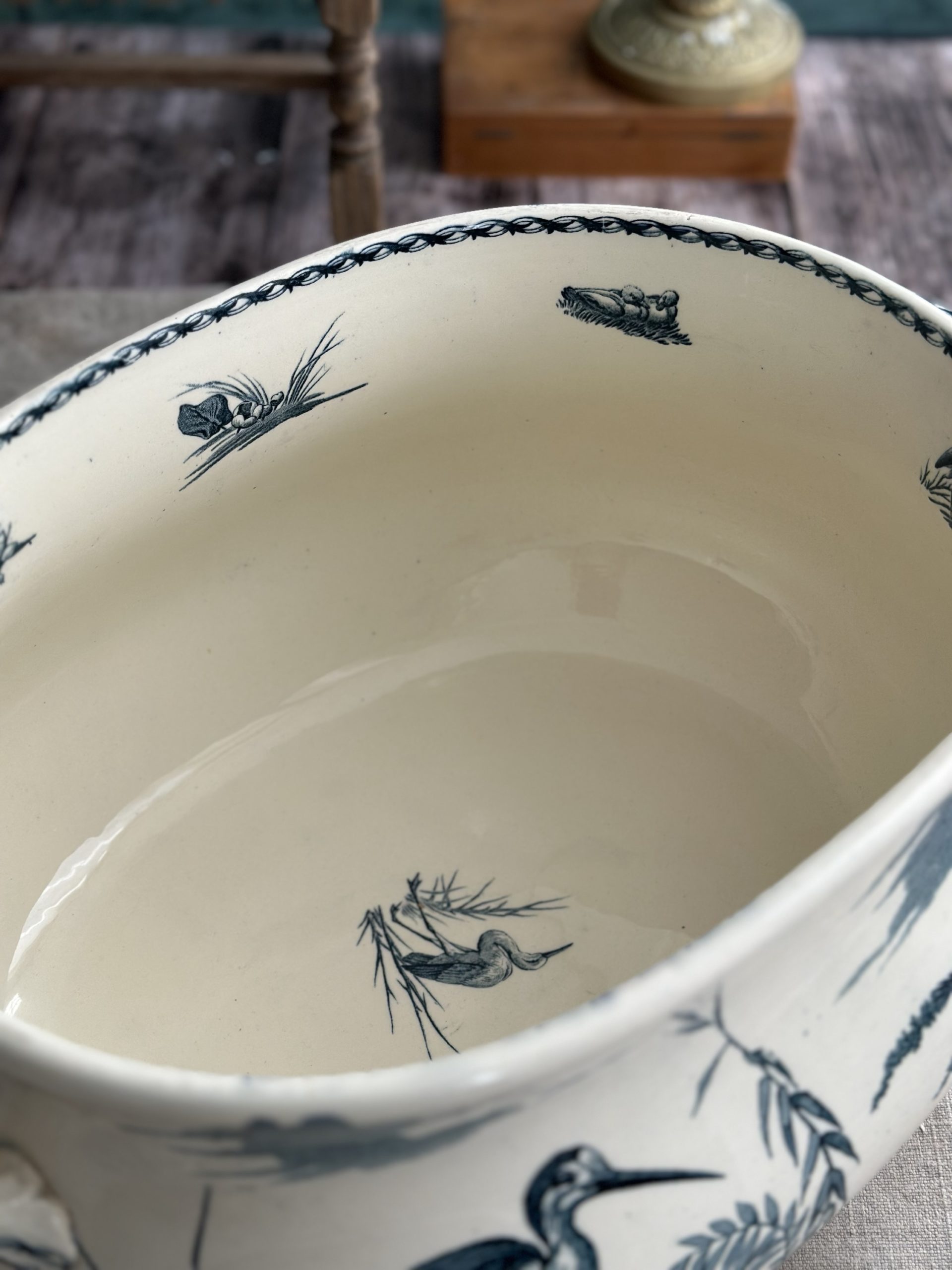 PIECE D’EXCEPTION, très grand bassin rafraichissoir Lunéville Oiseaux des marais » – XIXème