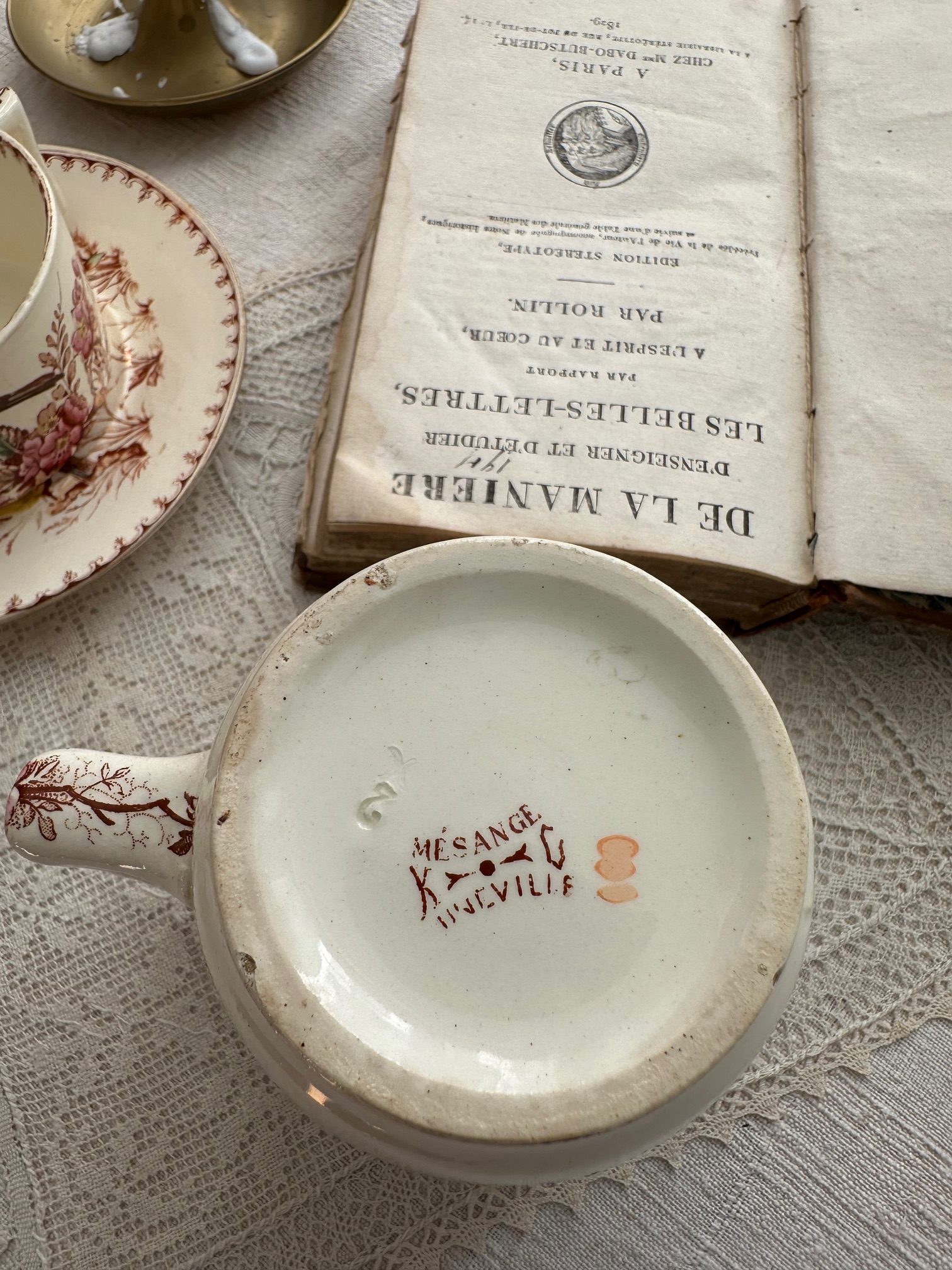 Pot à lait terre de fer polychrome Lunéville Mésange