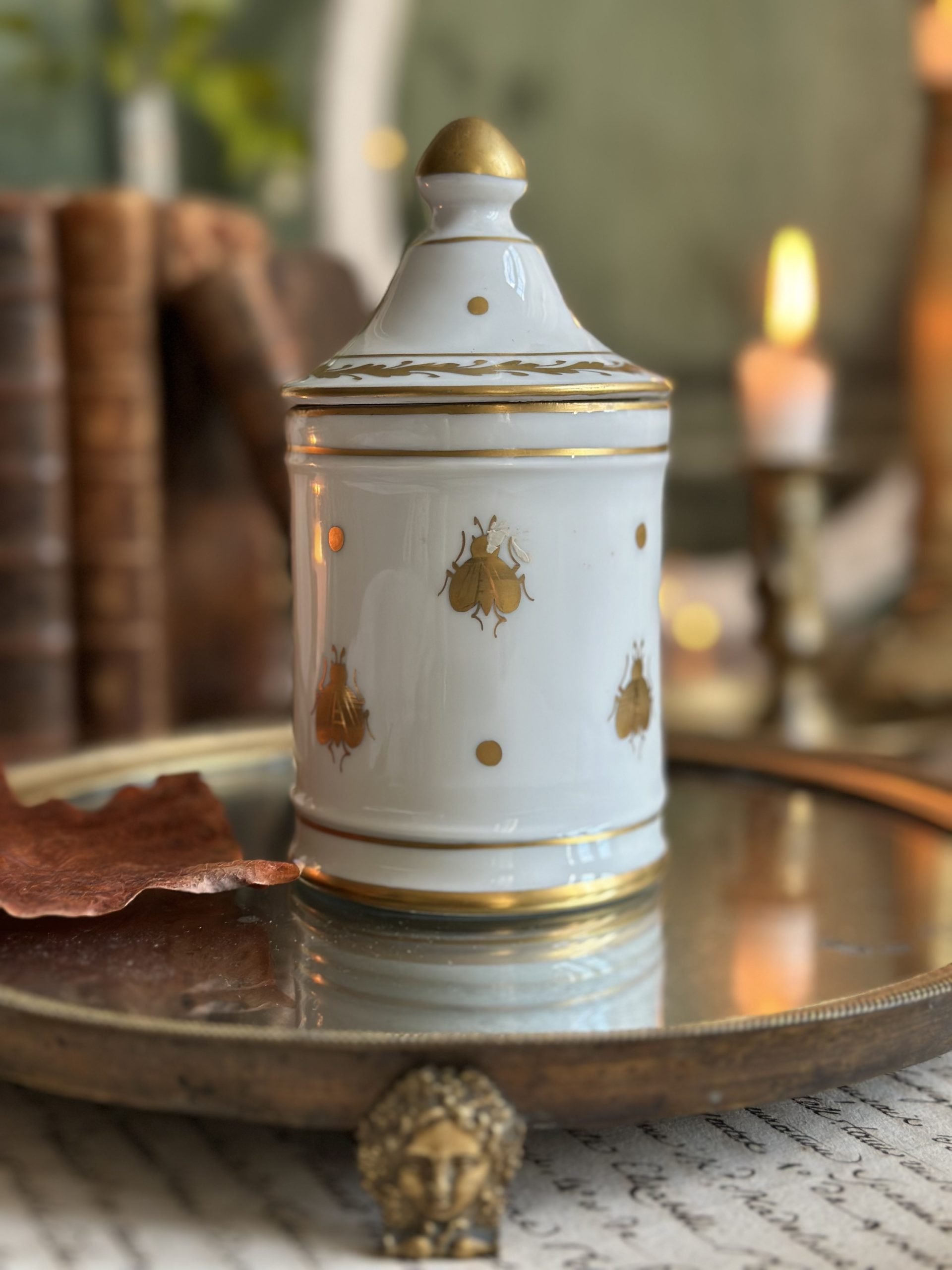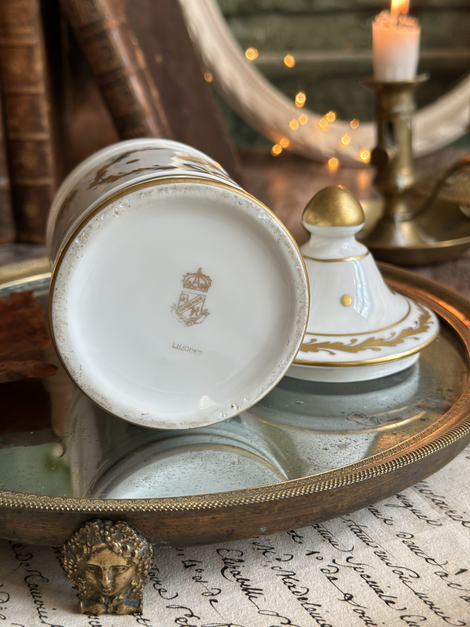 Pot apothicaire en porcelaine de Limoges, peint à la main à l’or fin, XIXème