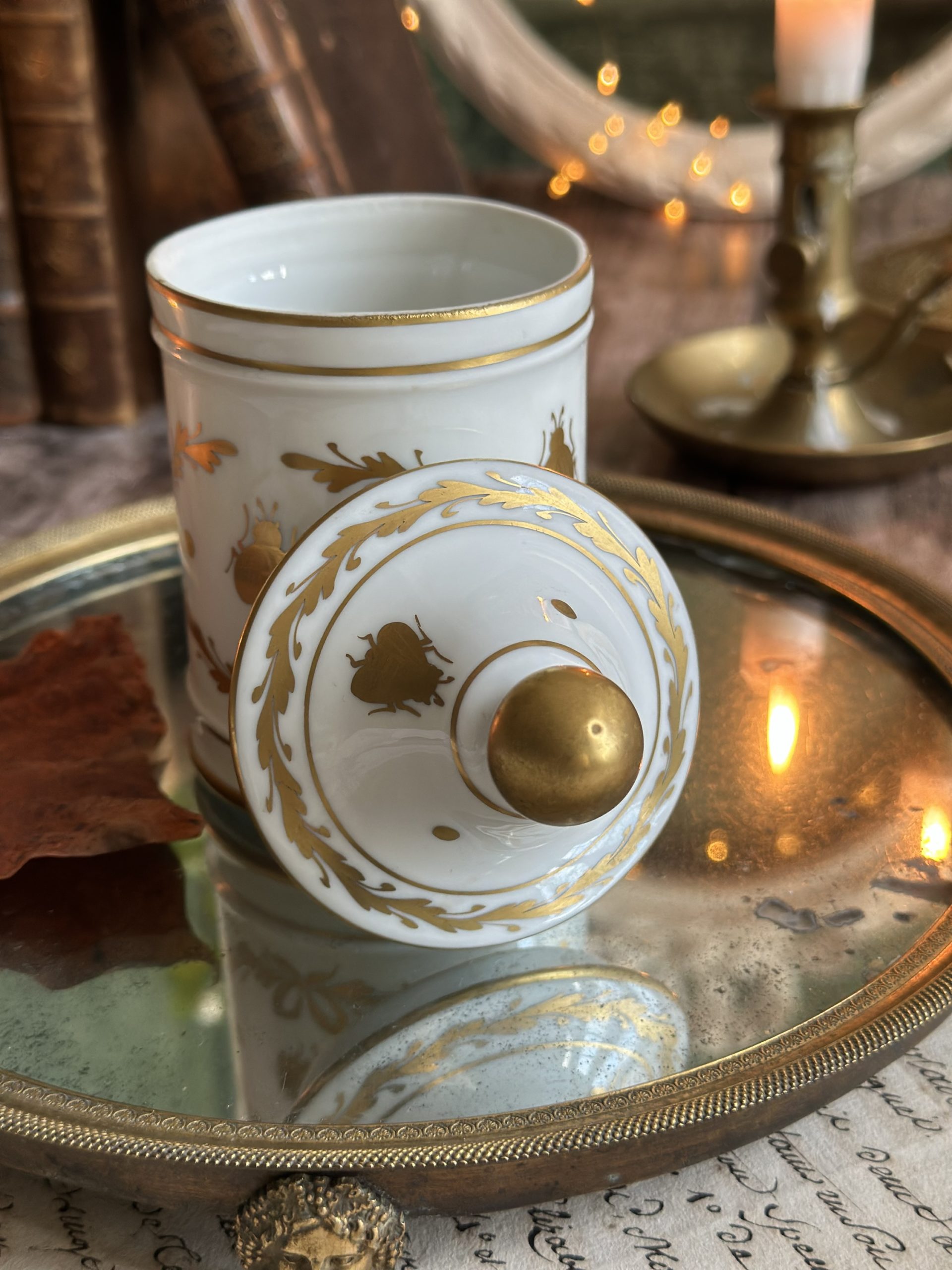 Pot à pharmacie en porcelaine de Limoges, peint à l’or fin, XIXème