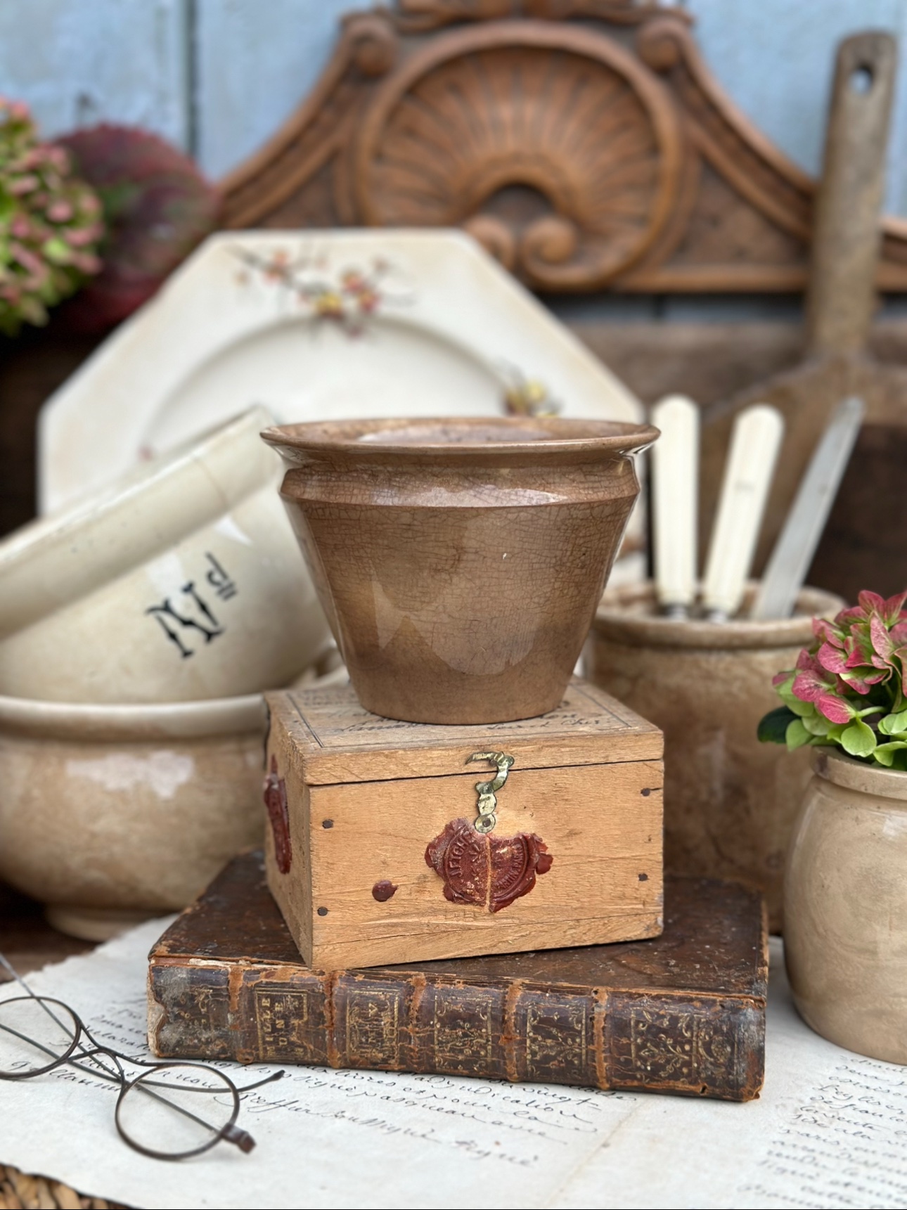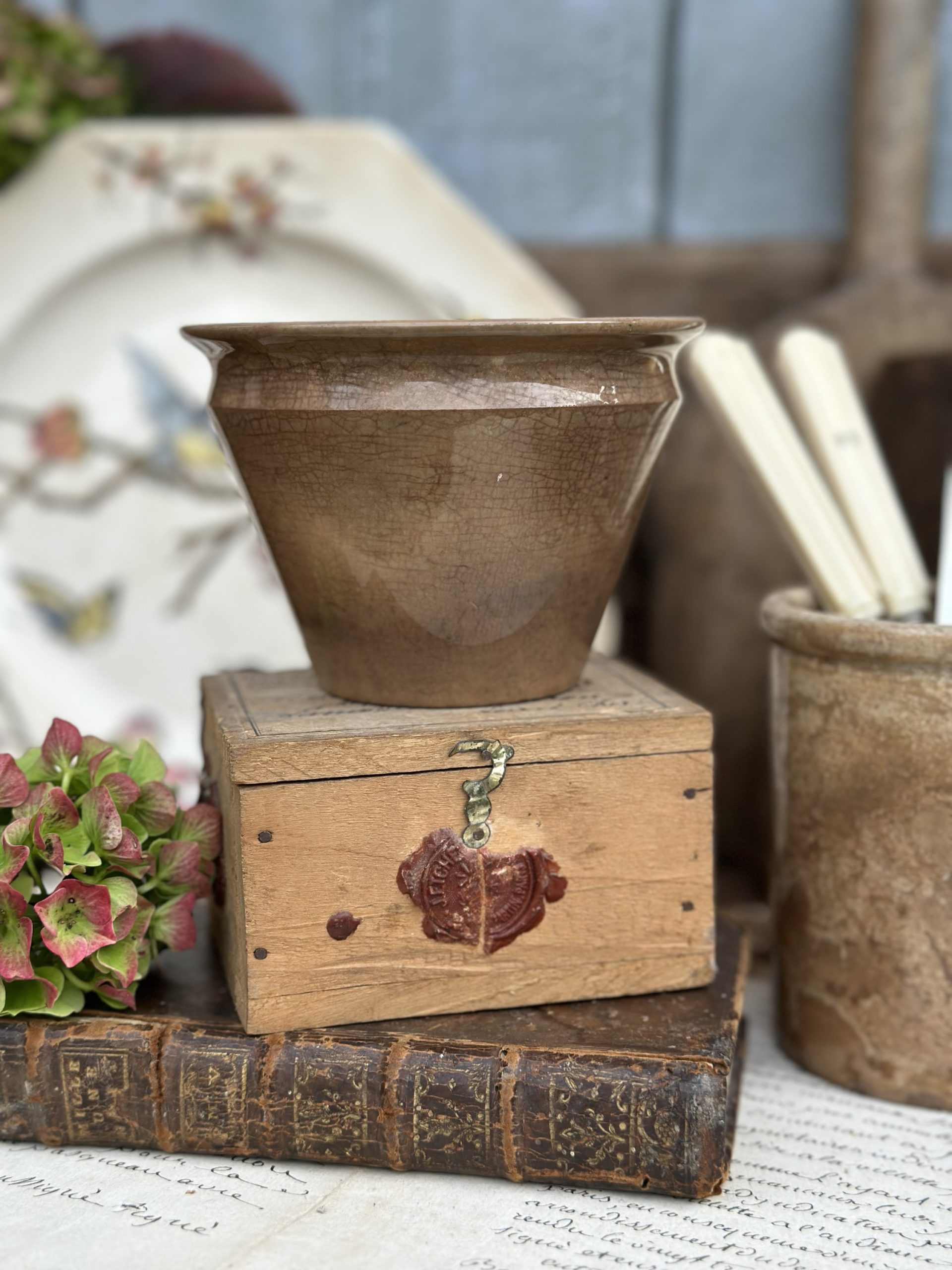 Pot conique subliment patiné Sarreguemines