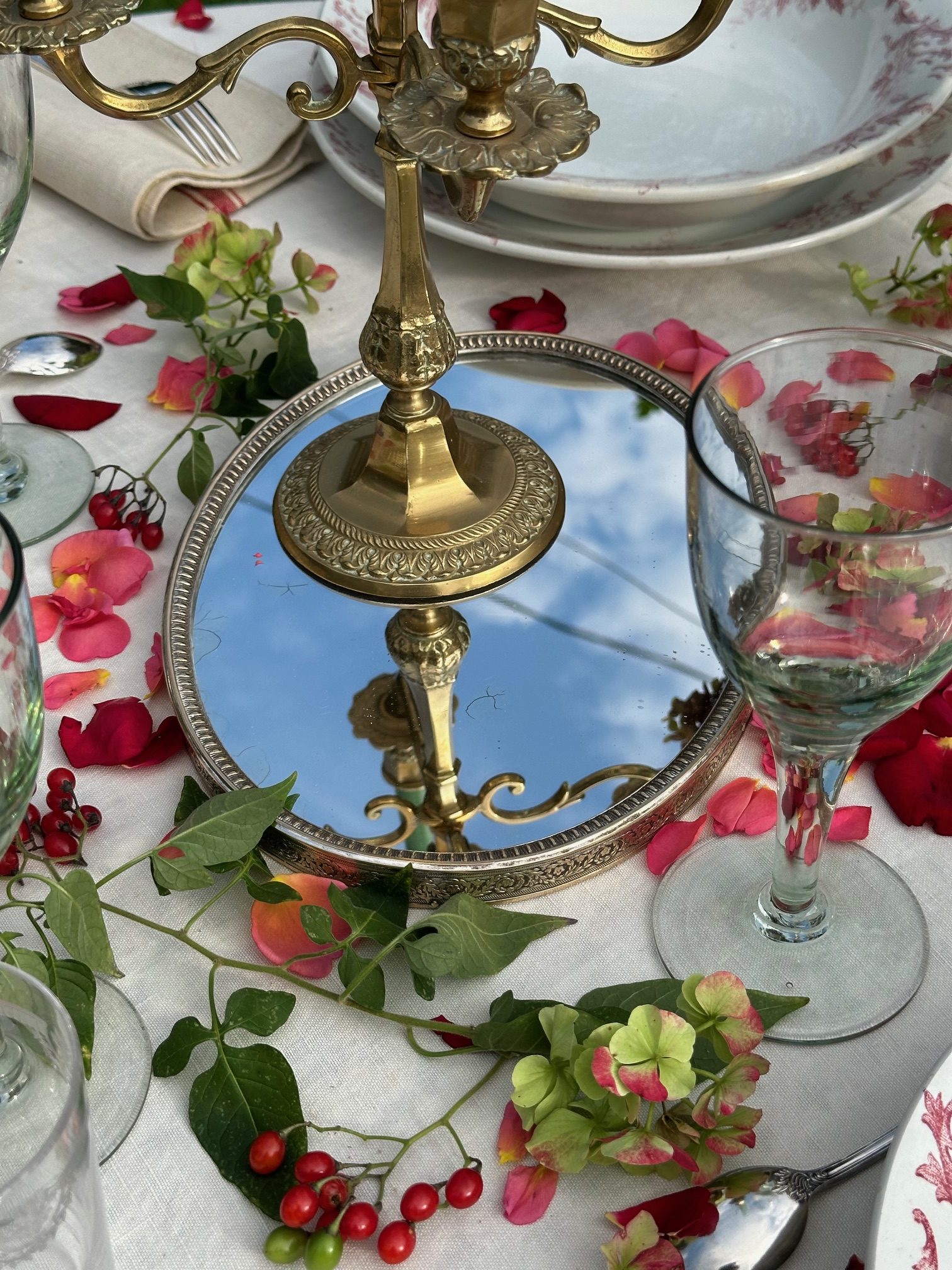 Réservé C – Petit plateau, centre de table miroir, repose plat et 6 assiettes creuses rose Burgenland