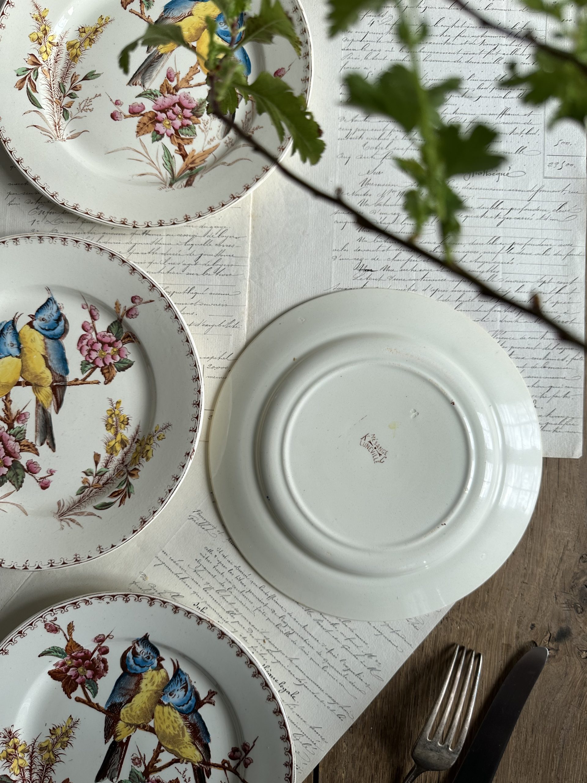 Suite de 4 assiettes à dessert Lunéville modèle Mésange