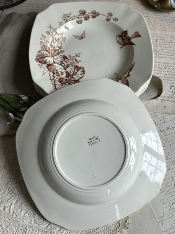 Suite de 4 assiettes creuses Lunéville modèle Ronce