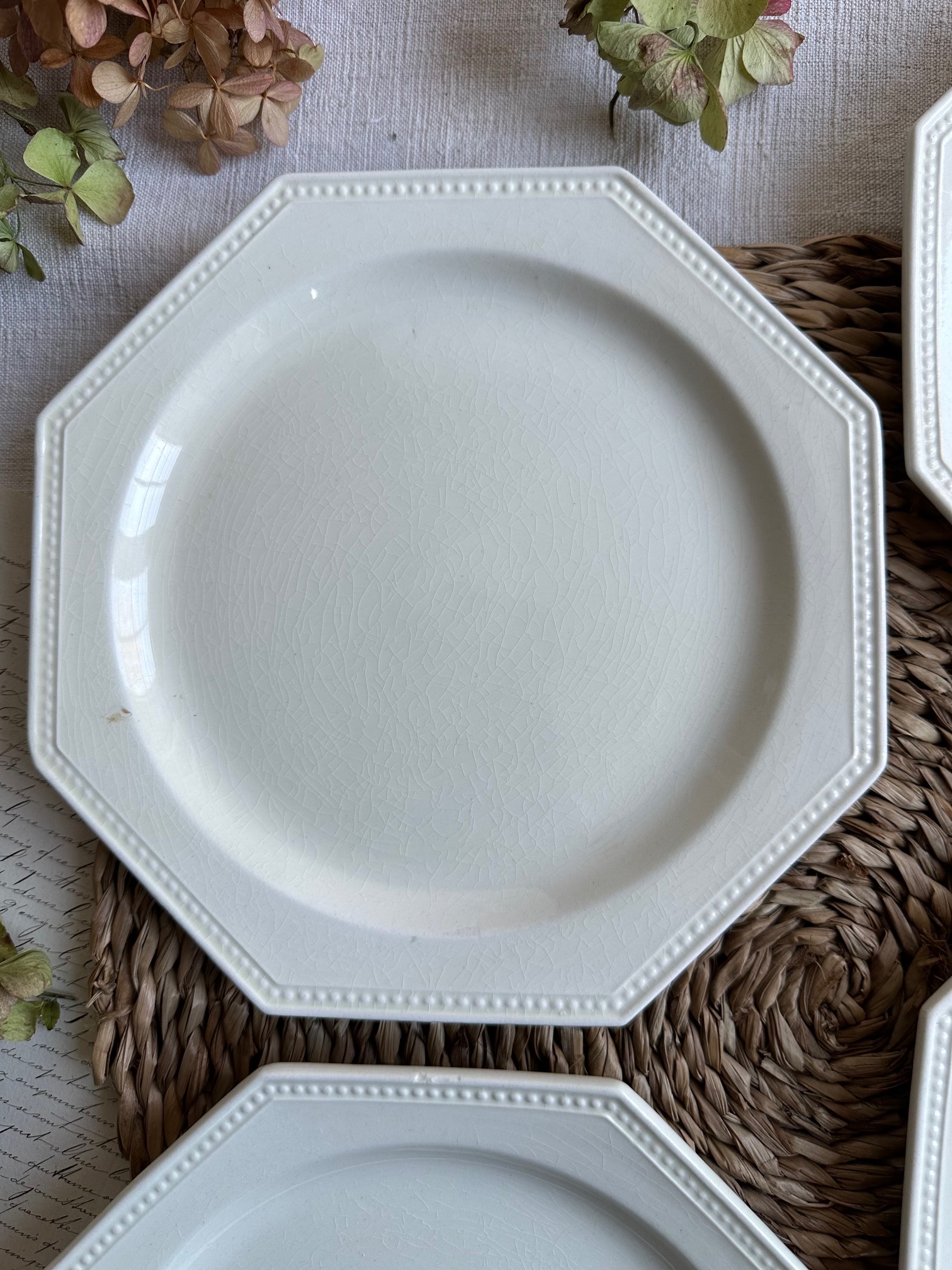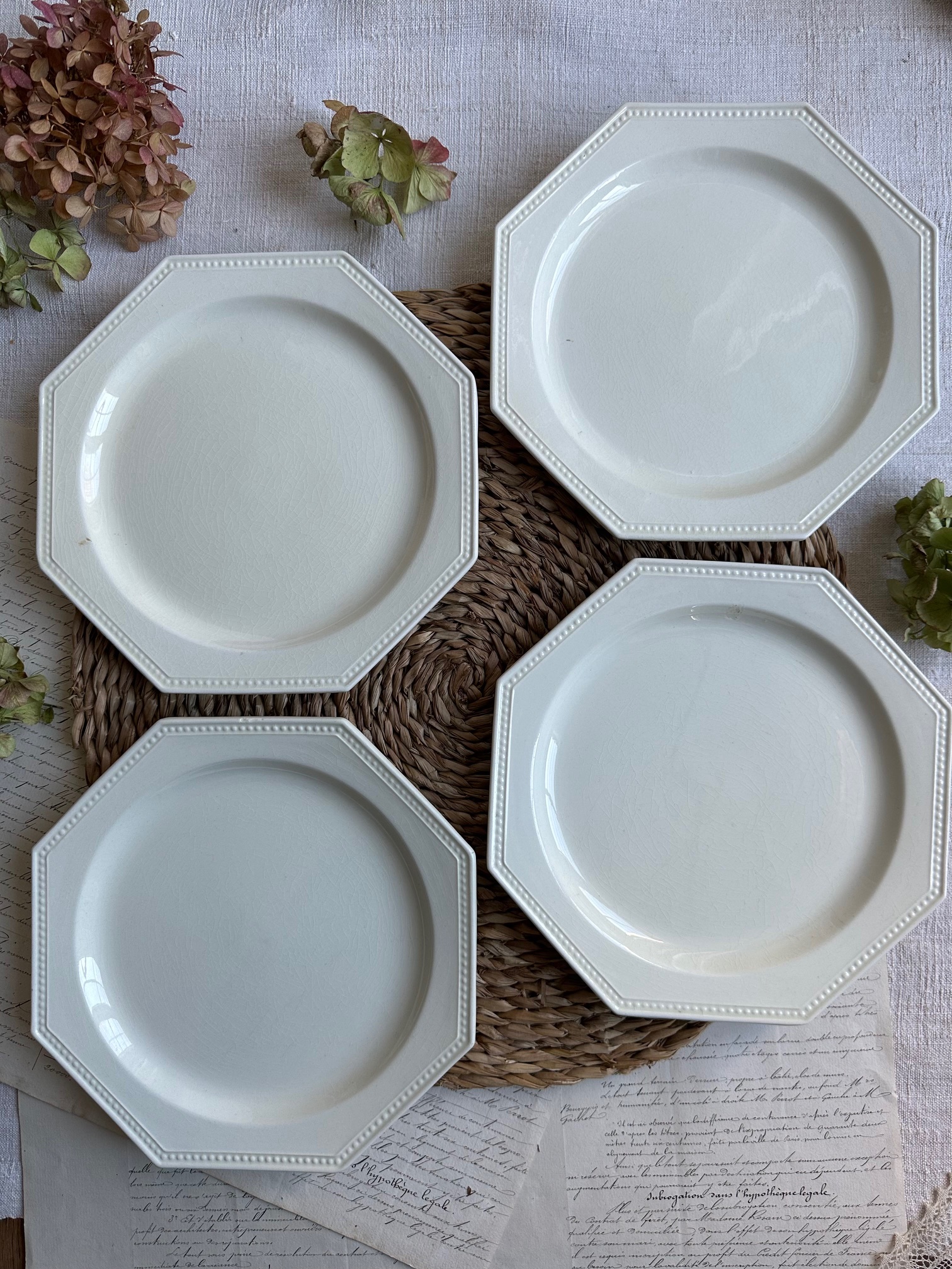 Suite de 4 assiettes octogonales perlées Montereau