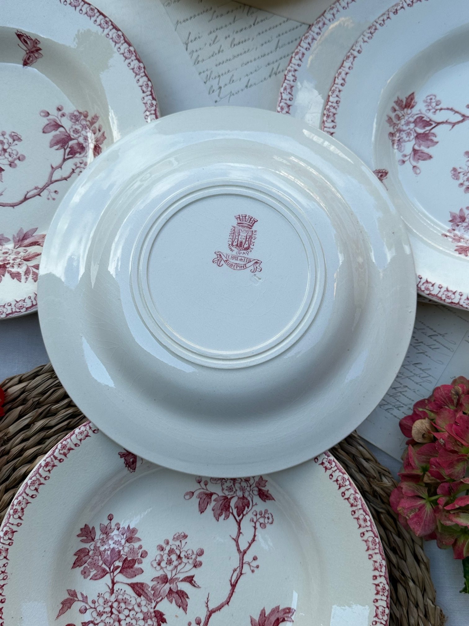 Suite de 6 assiettes creuses Gien modèle Aubépine (3 lots sont disponibles)