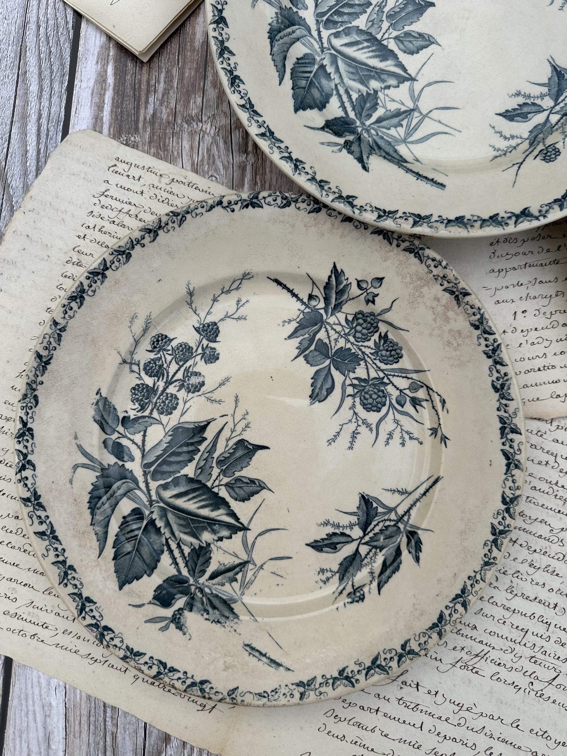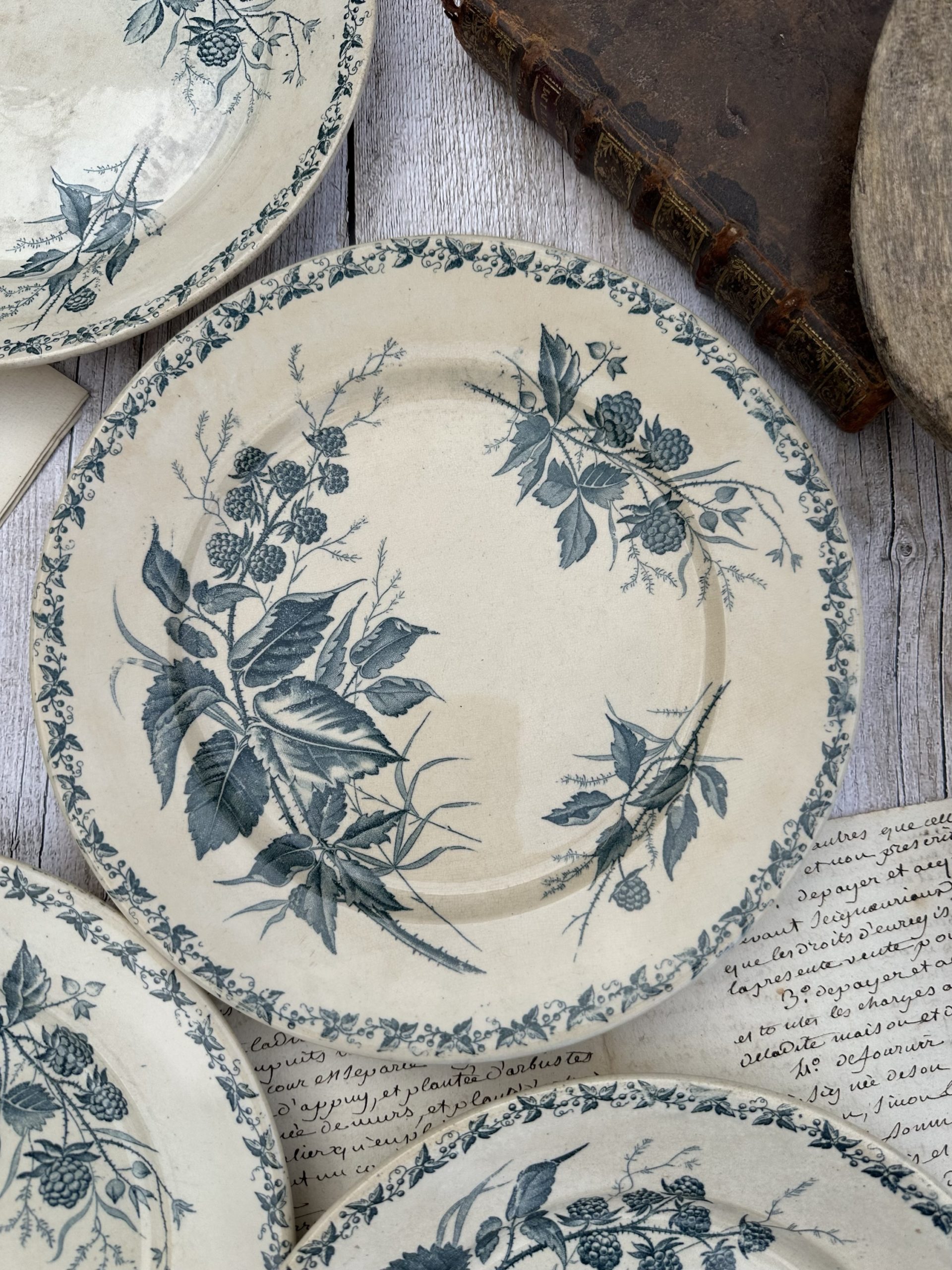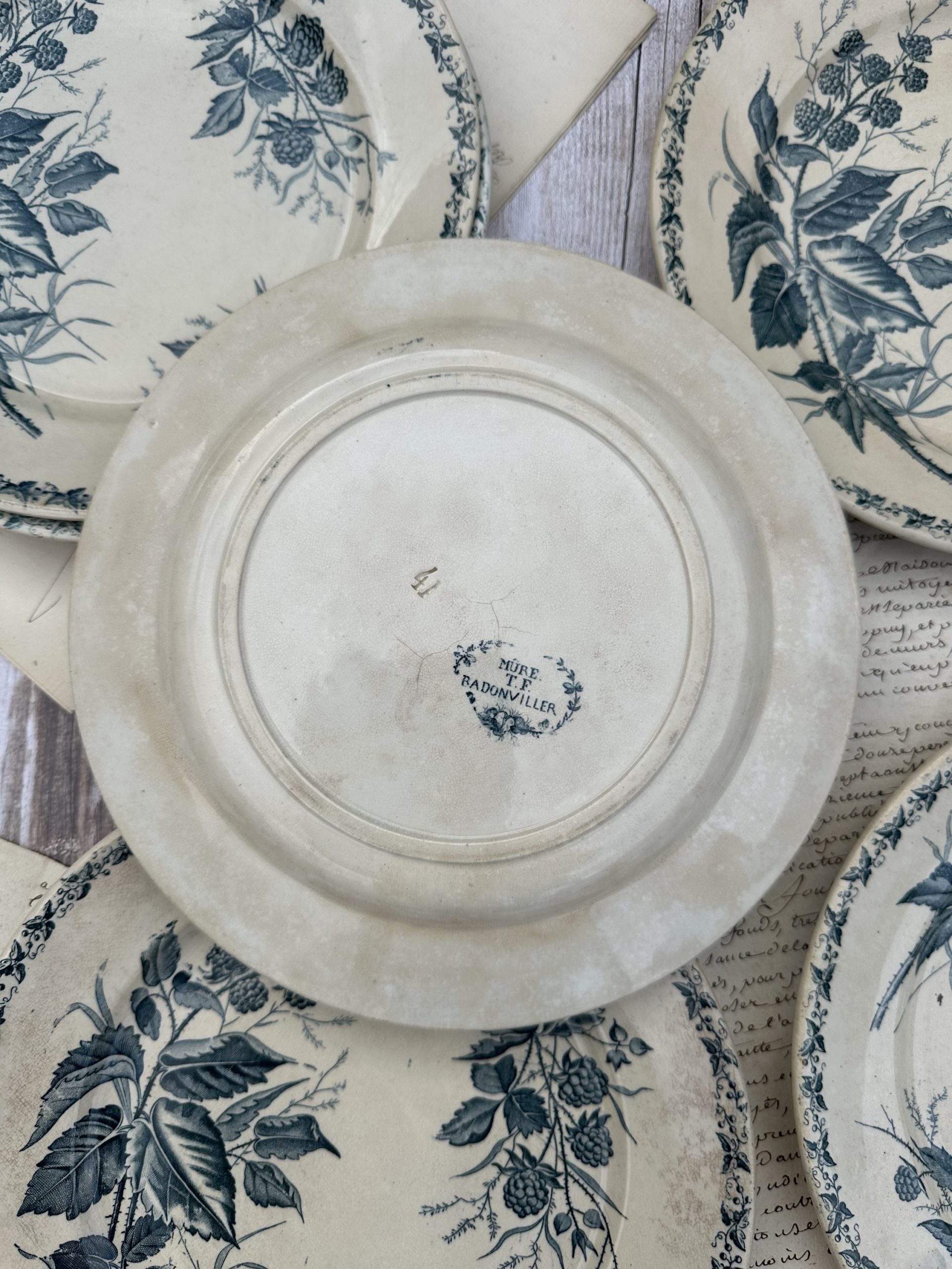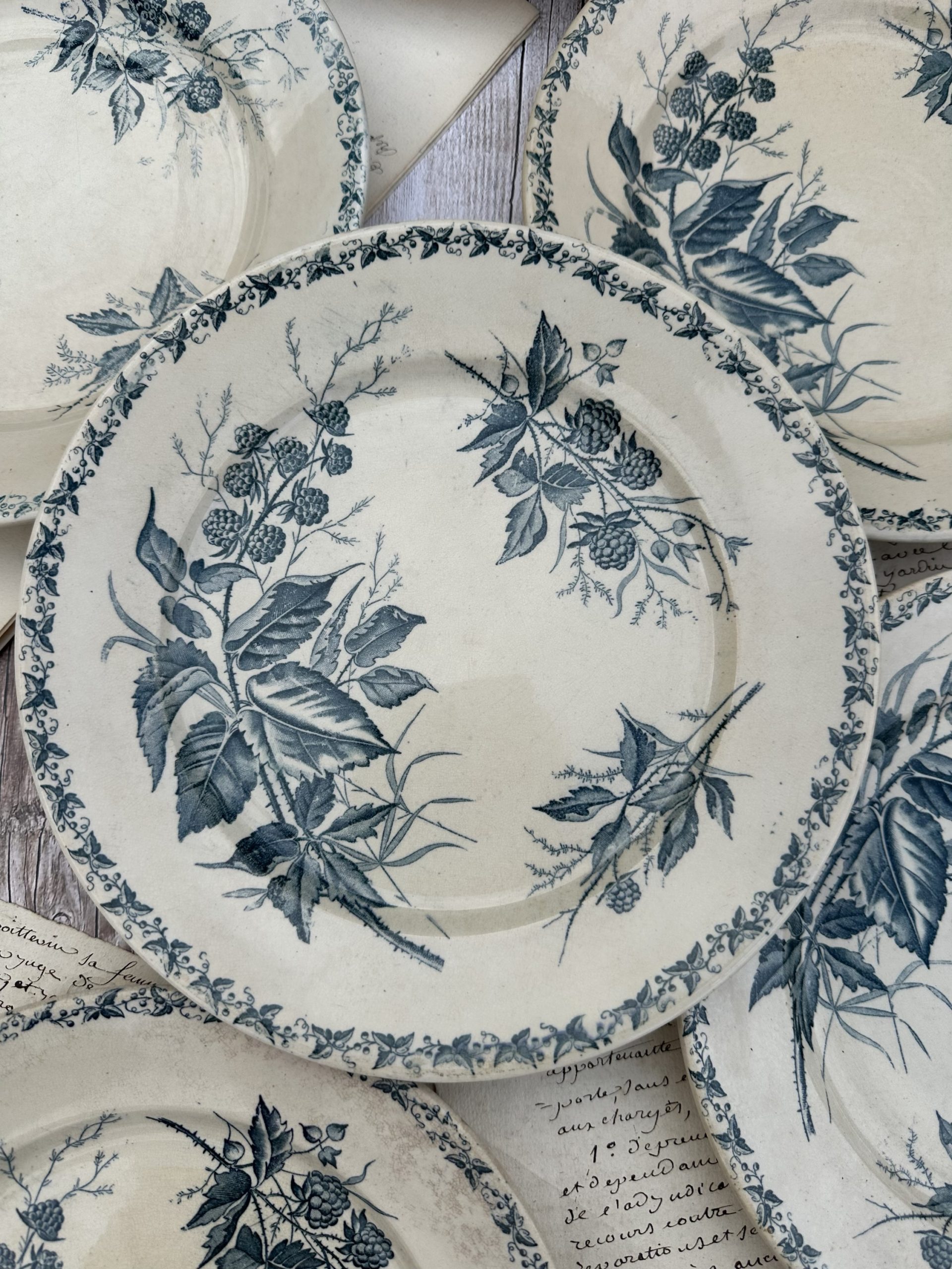 Suite de 6 assiettes plates patinées Badonviller modèle Mûre