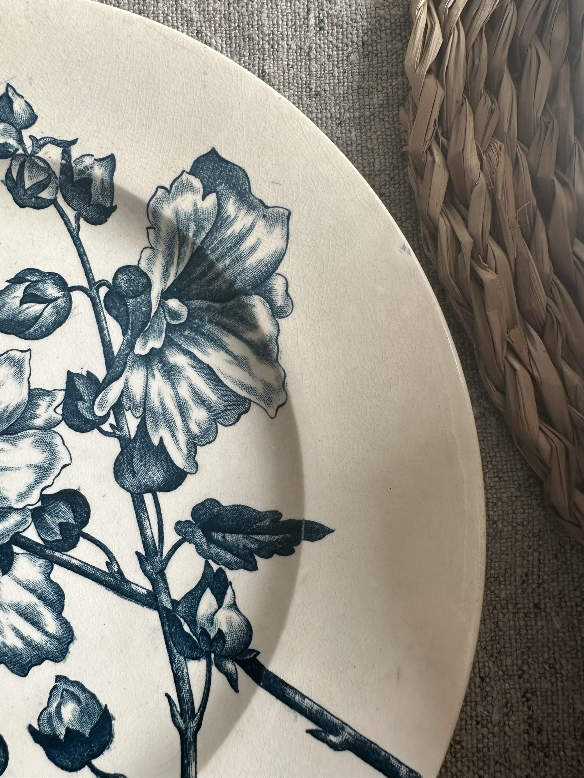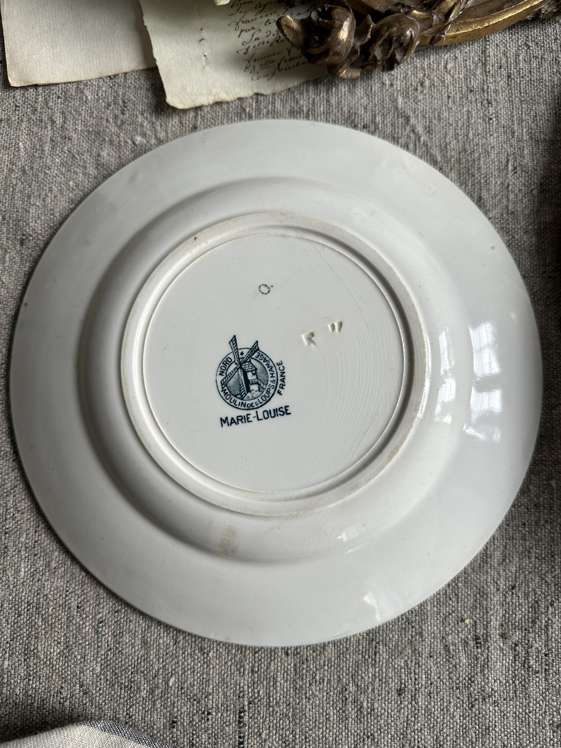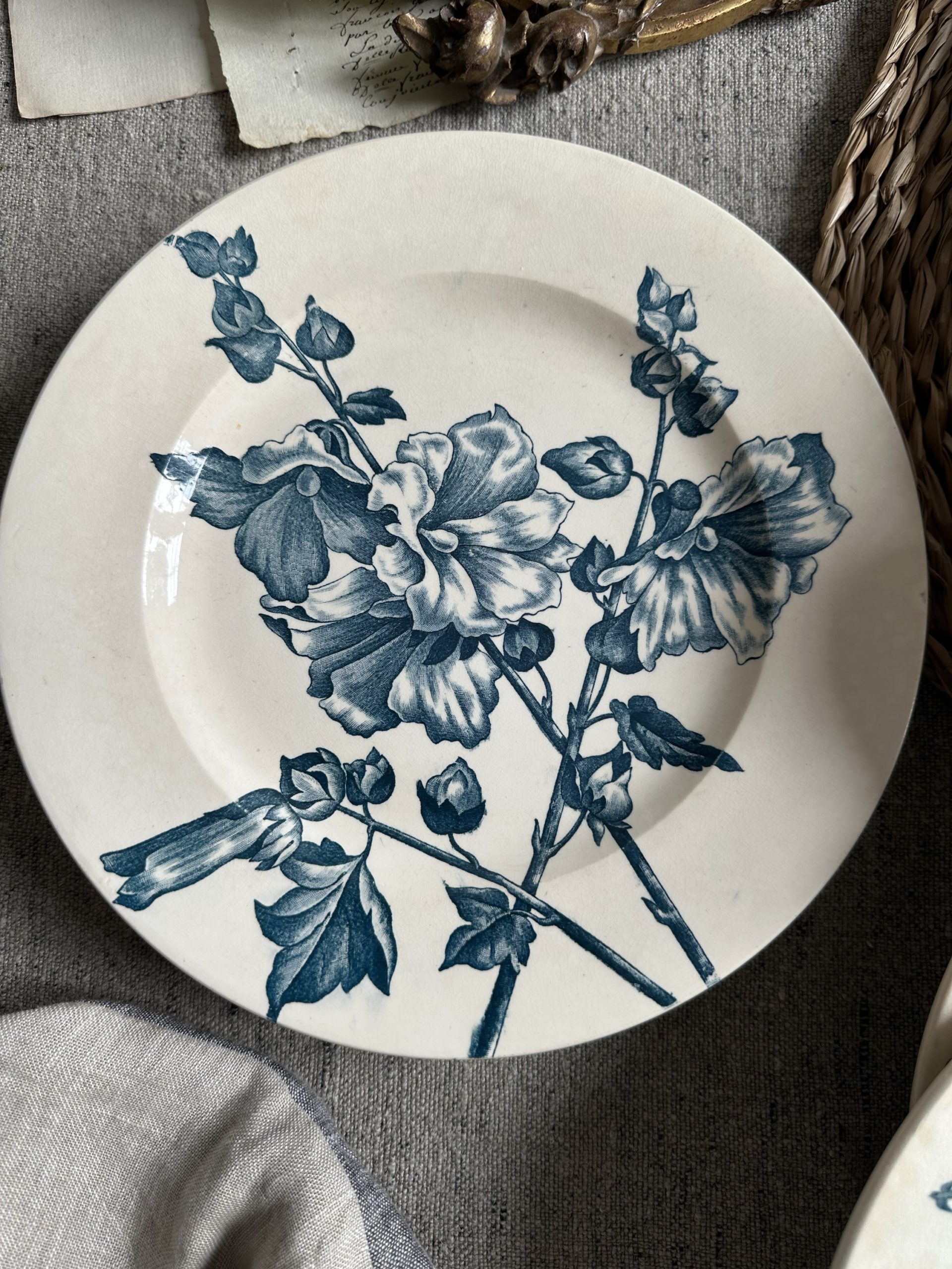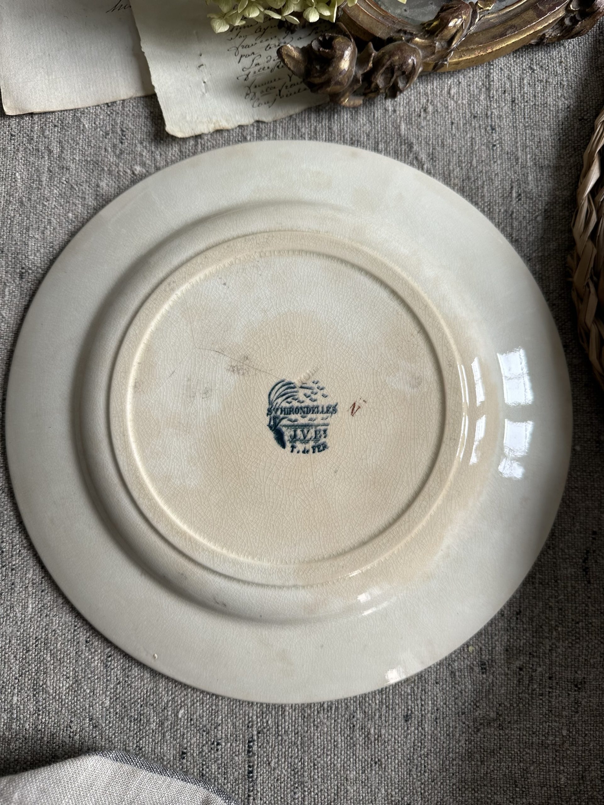 Salins Rose Trémières24cm,  Jules Vieillard Bordeaux 23,60cm, Longwy Manon 2,80cm, Moulins des Loups Marie Louise 22,20cm, Sarreguemines Royat – 23,80cm , Choisy le Roi modèle Bordeaux – 23,50cm