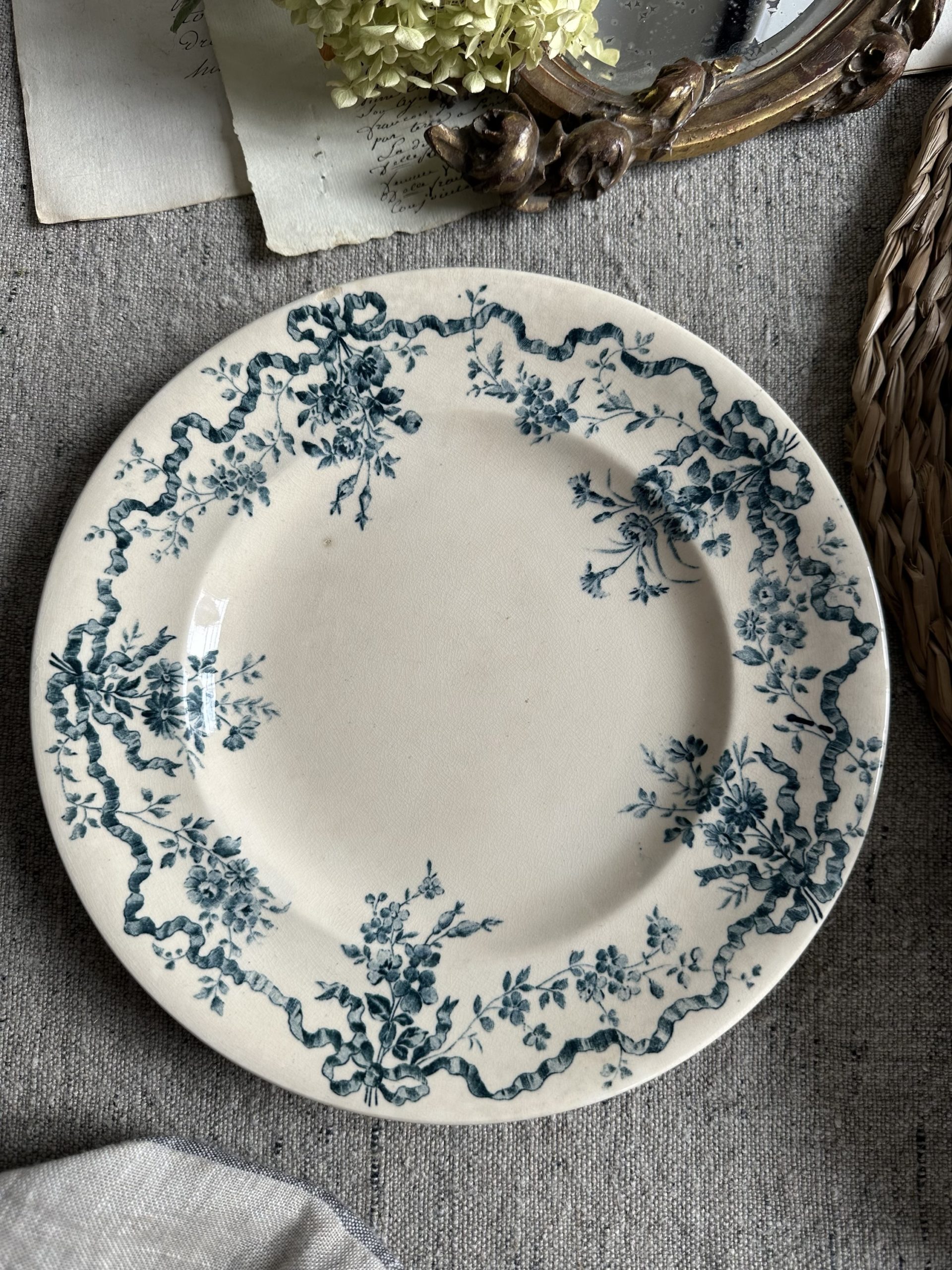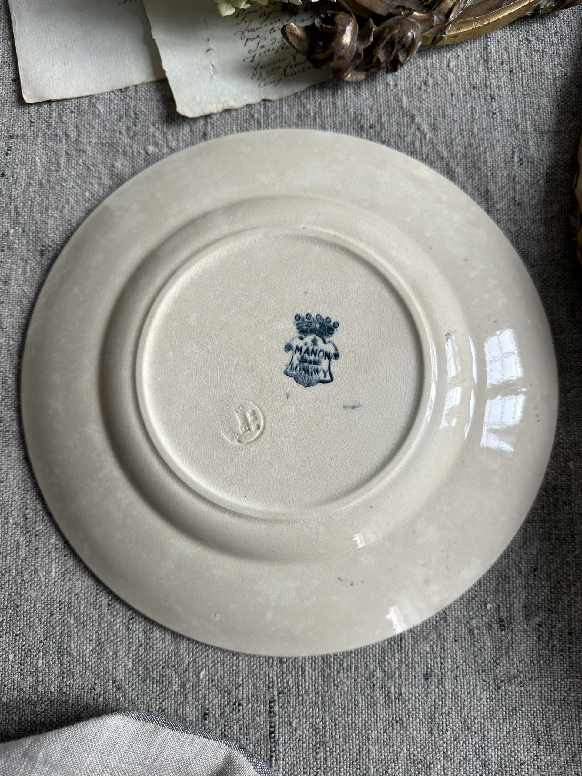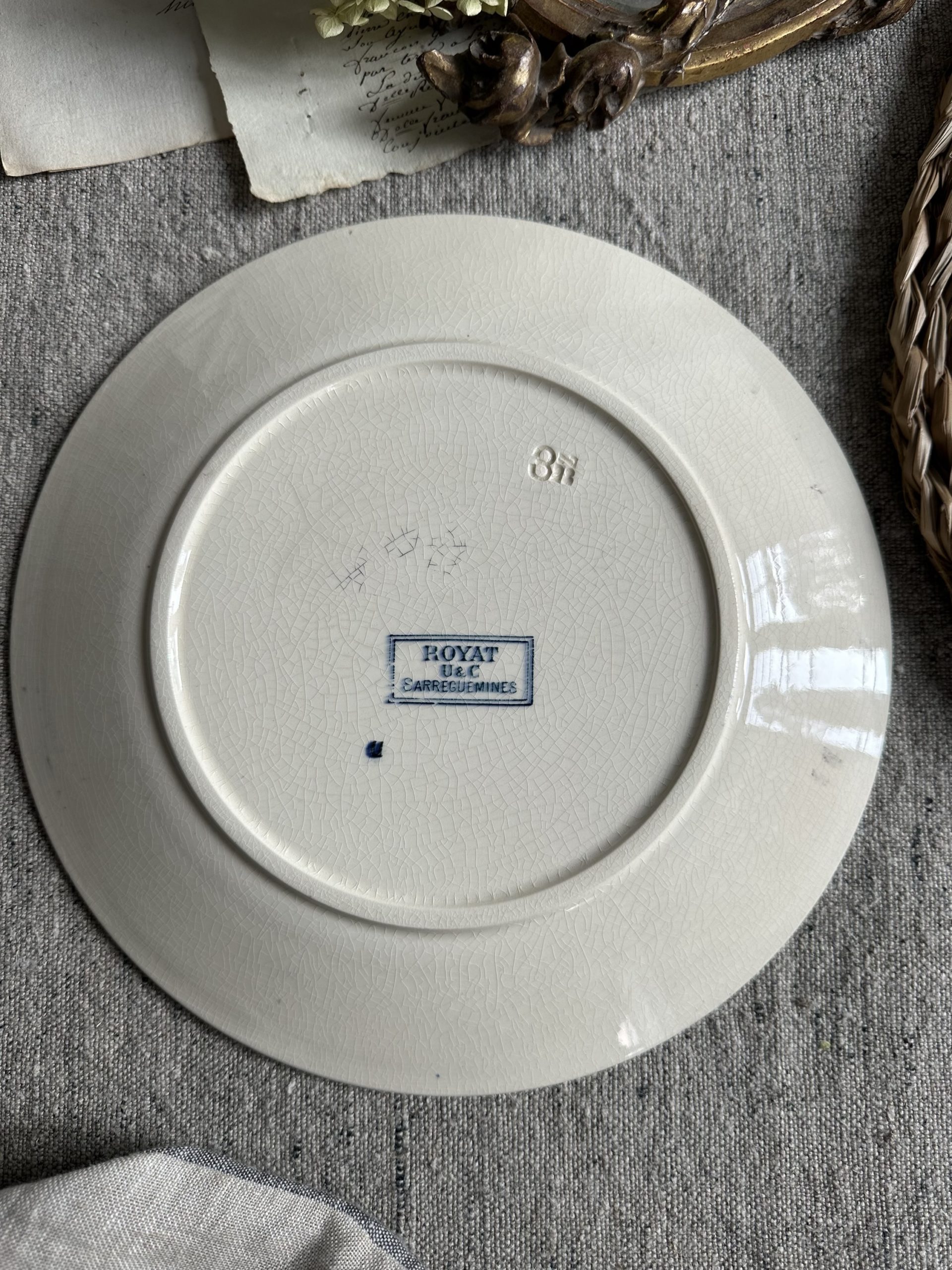Salins Rose Trémières24cm,  Jules Vieillard Bordeaux 23,60cm, Longwy Manon 2,80cm, Moulins des Loups Marie Louise 22,20cm, Sarreguemines Royat – 23,80cm , Choisy le Roi modèle Bordeaux – 23,50cm