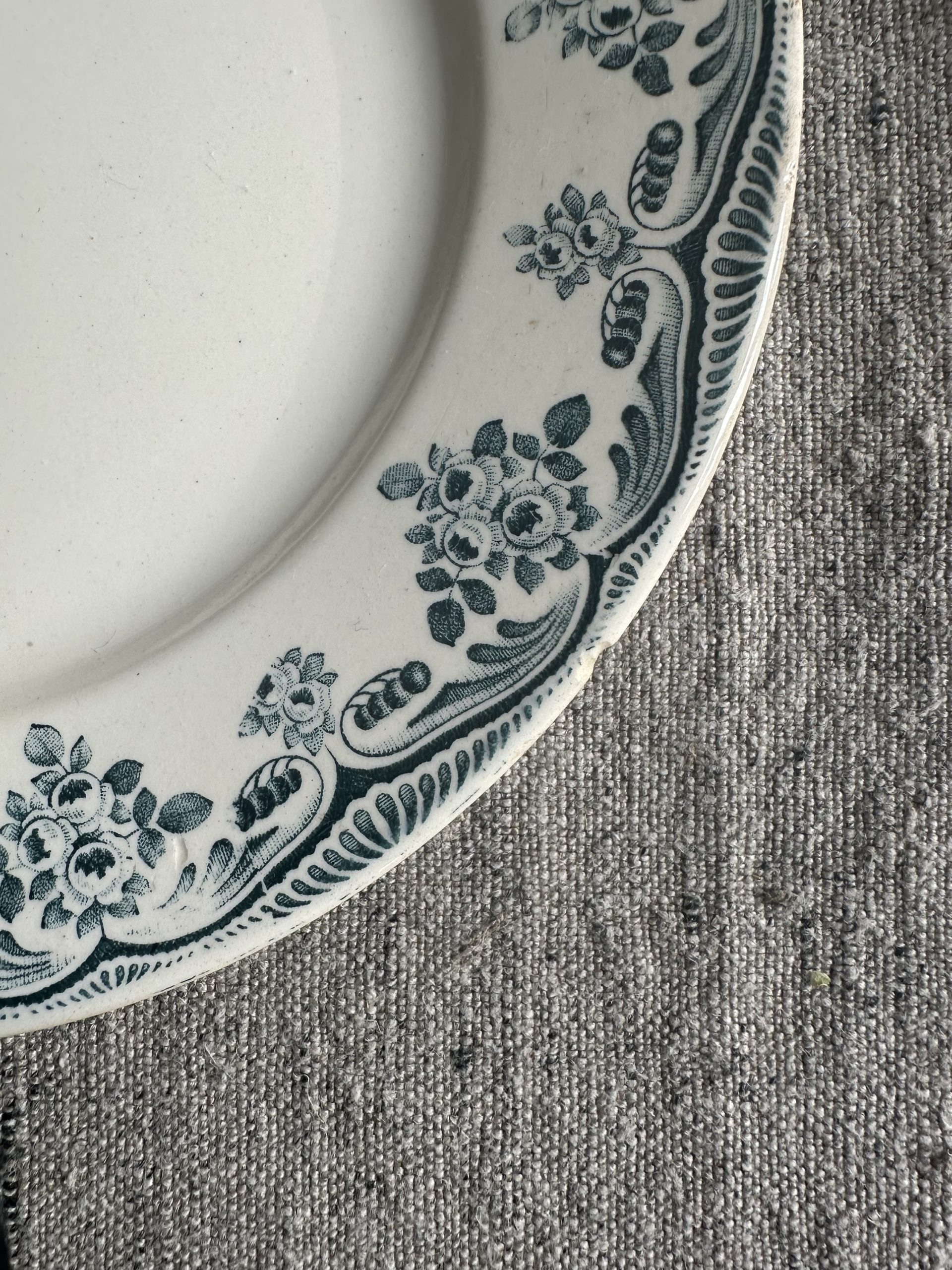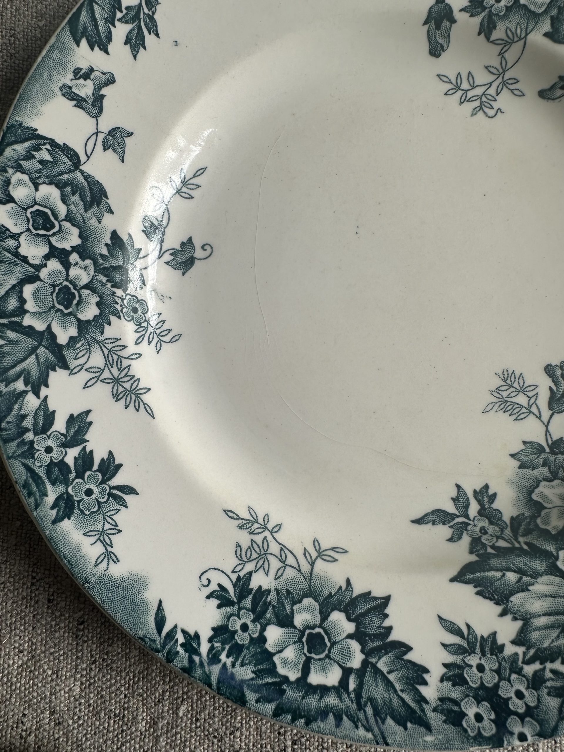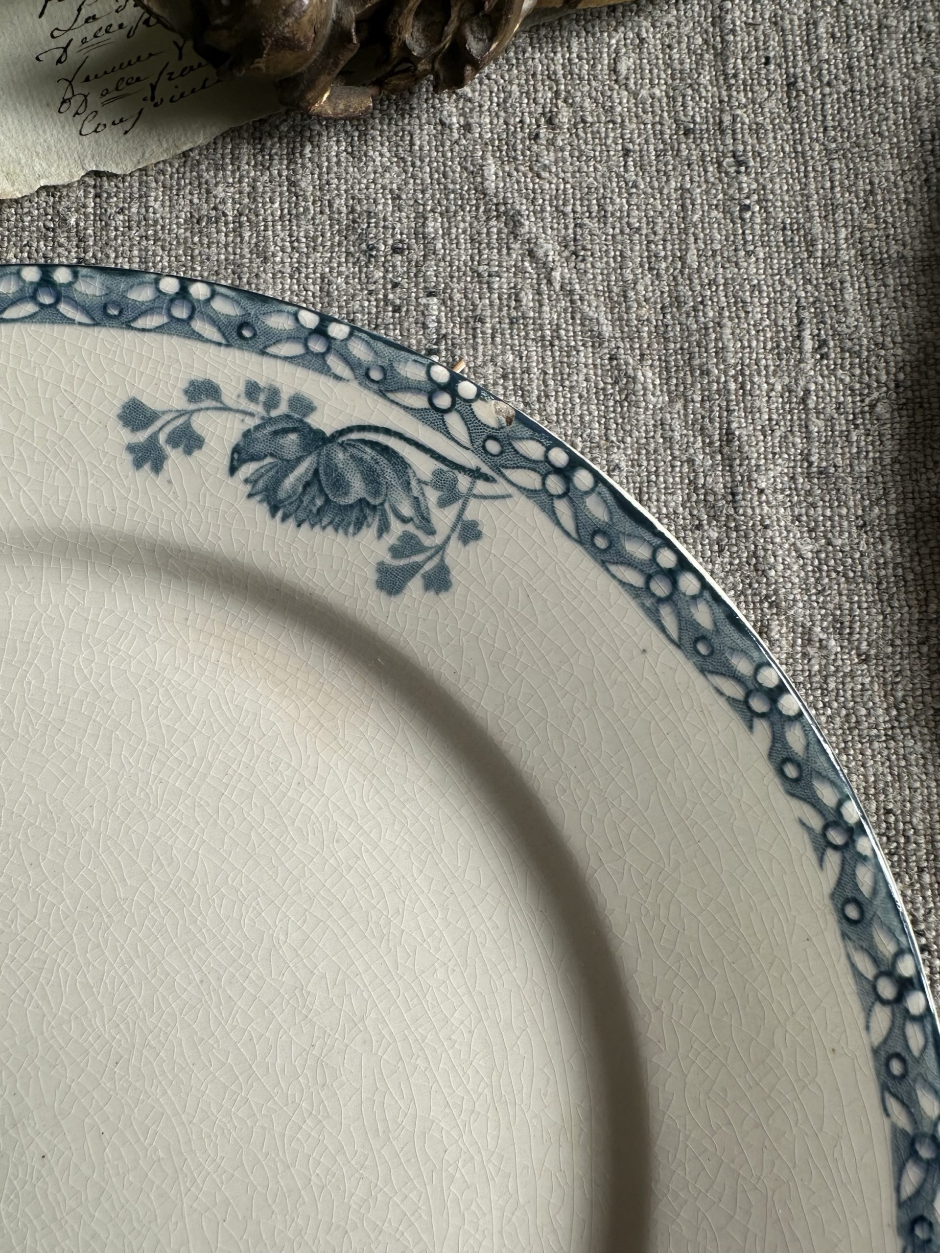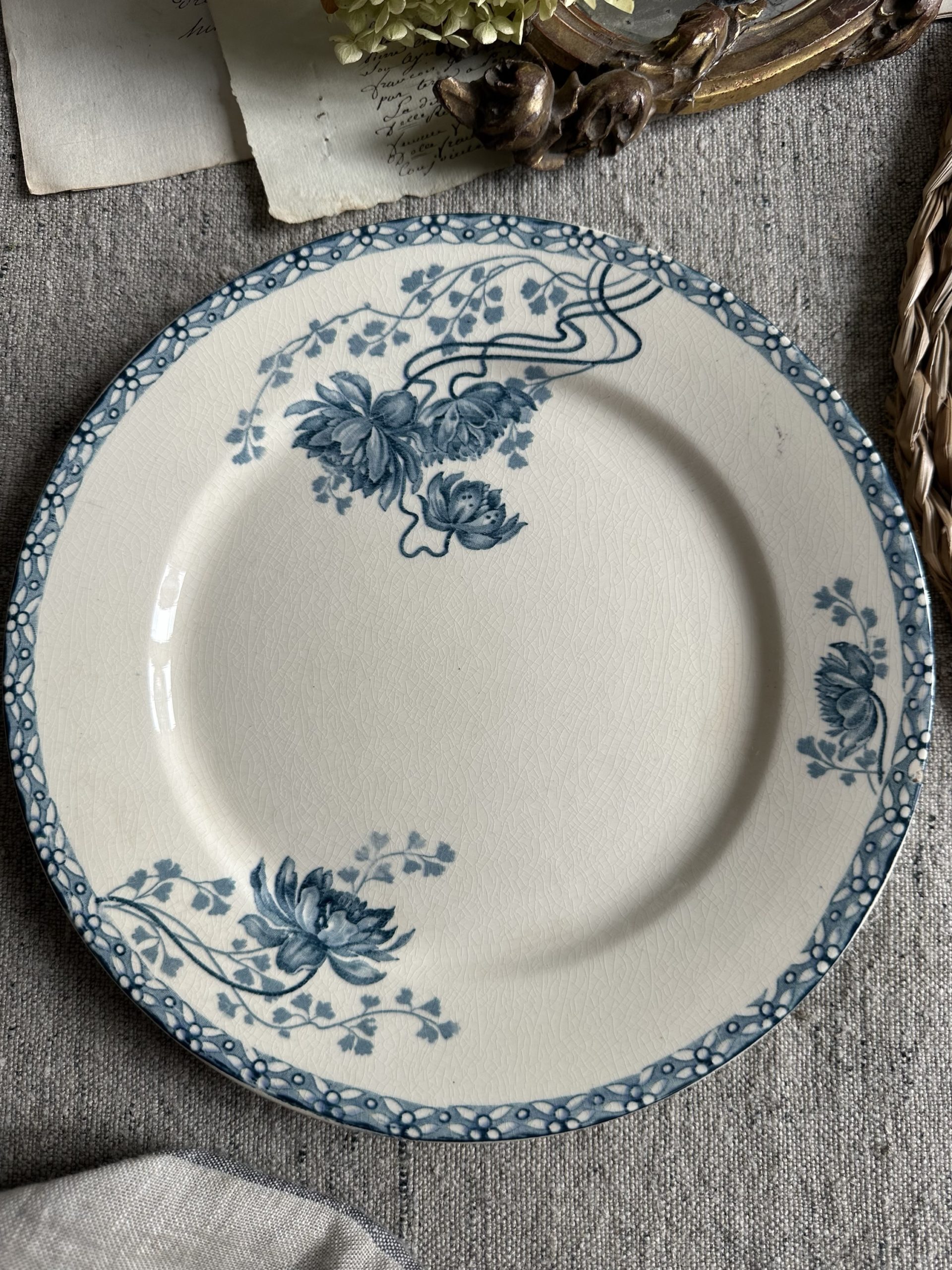 Salins Rose Trémières24cm,  Jules Vieillard Bordeaux 23,60cm, Longwy Manon 2,80cm, Moulins des Loups Marie Louise 22,20cm, Sarreguemines Royat – 23,80cm , Choisy le Roi modèle Bordeaux – 23,50cm