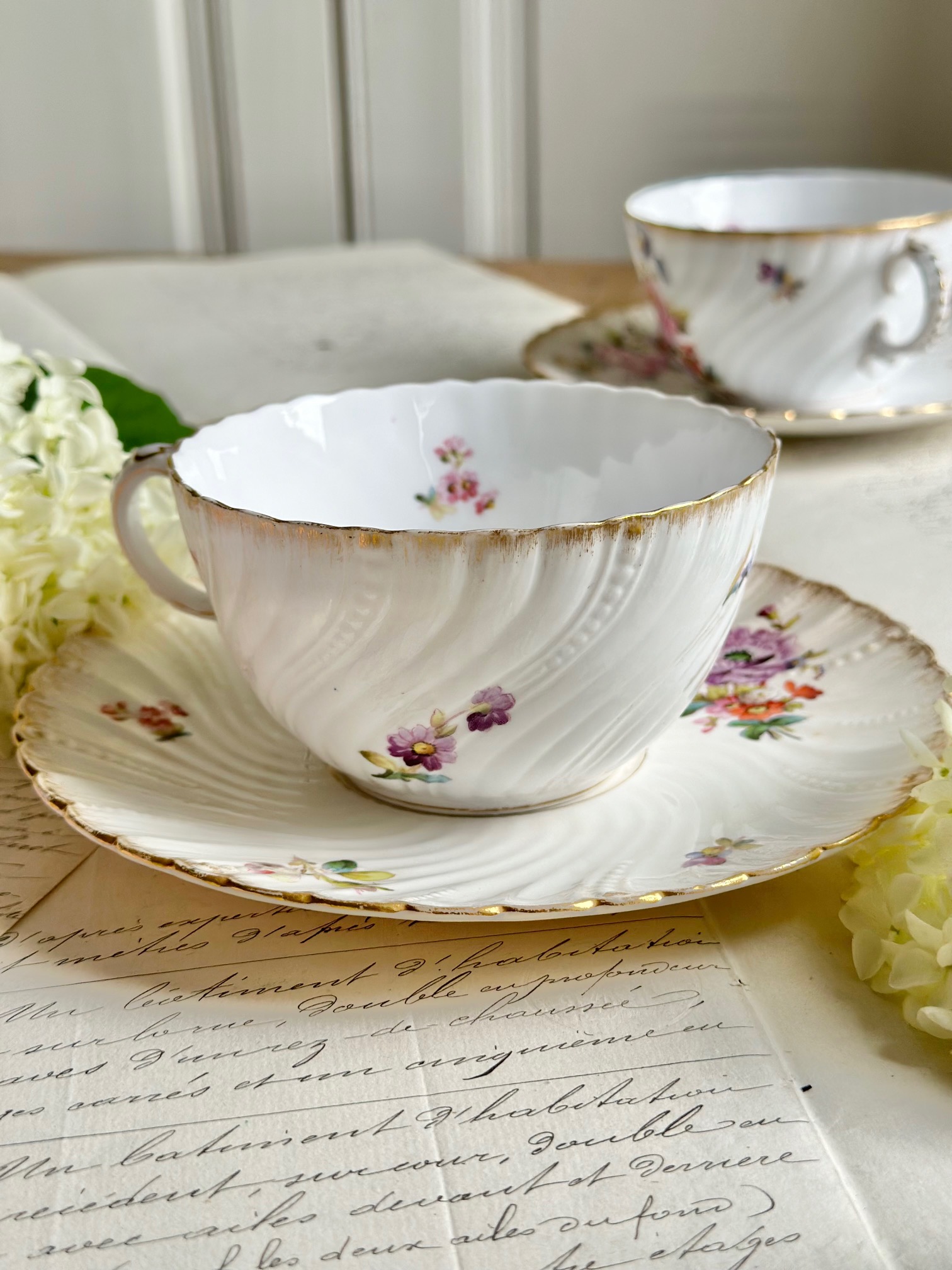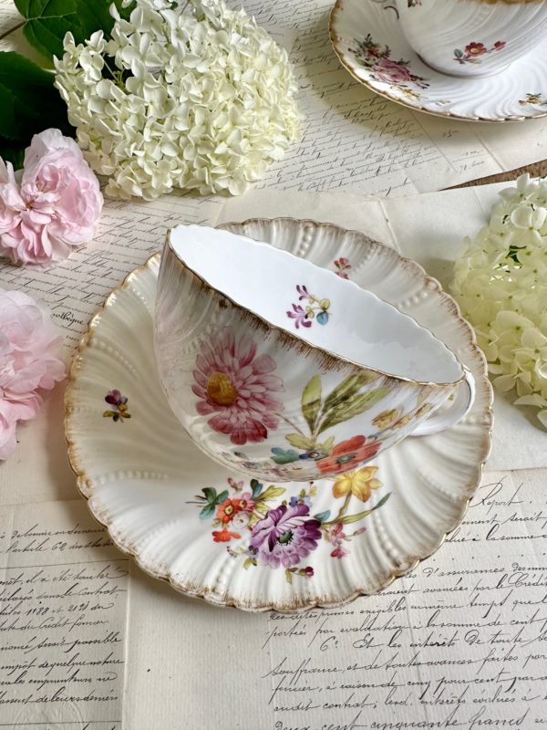 Grande tasse à chocolat / à déjeuner avec sa sous-tasse en porcelaine Sarreguemines