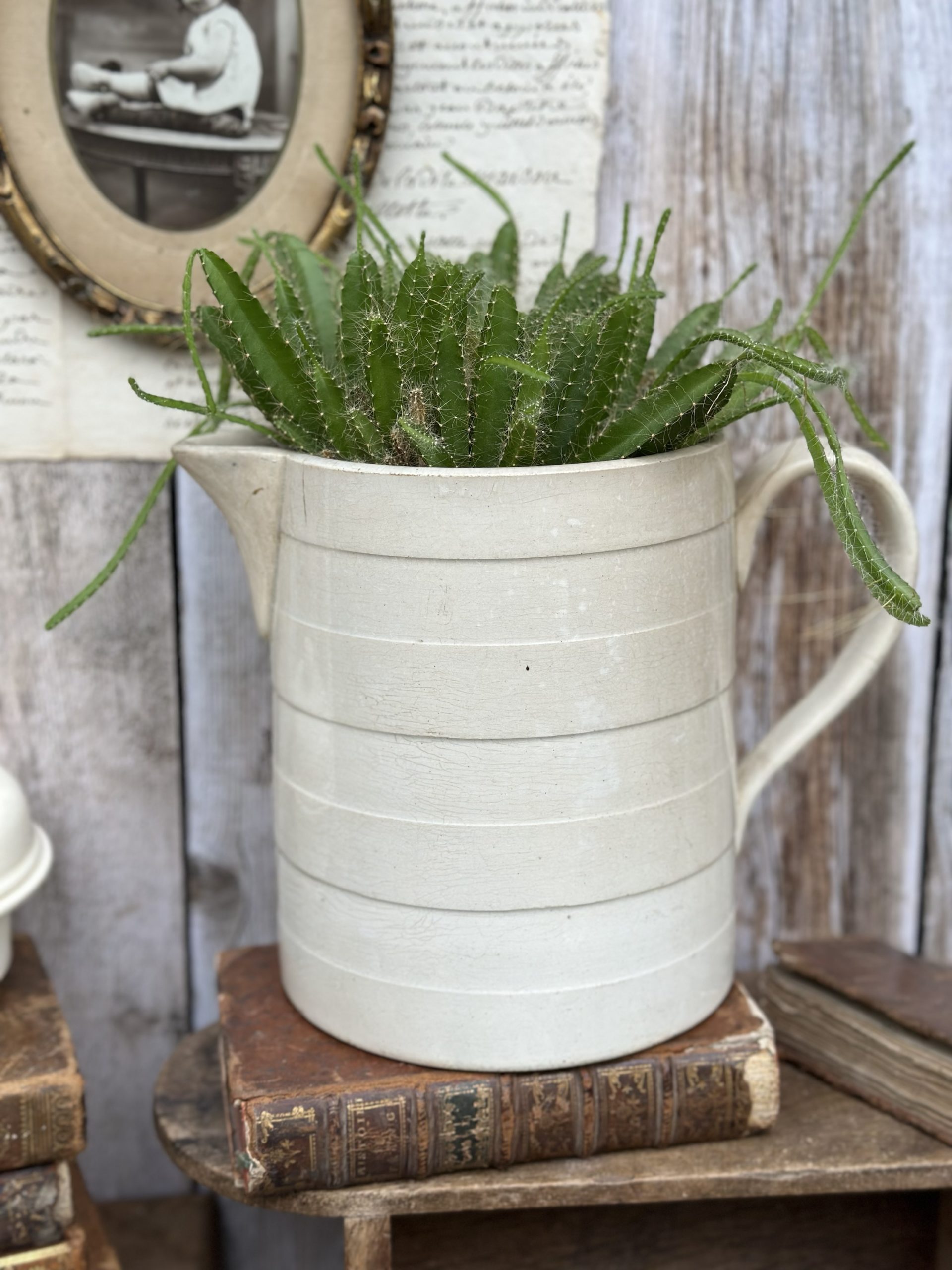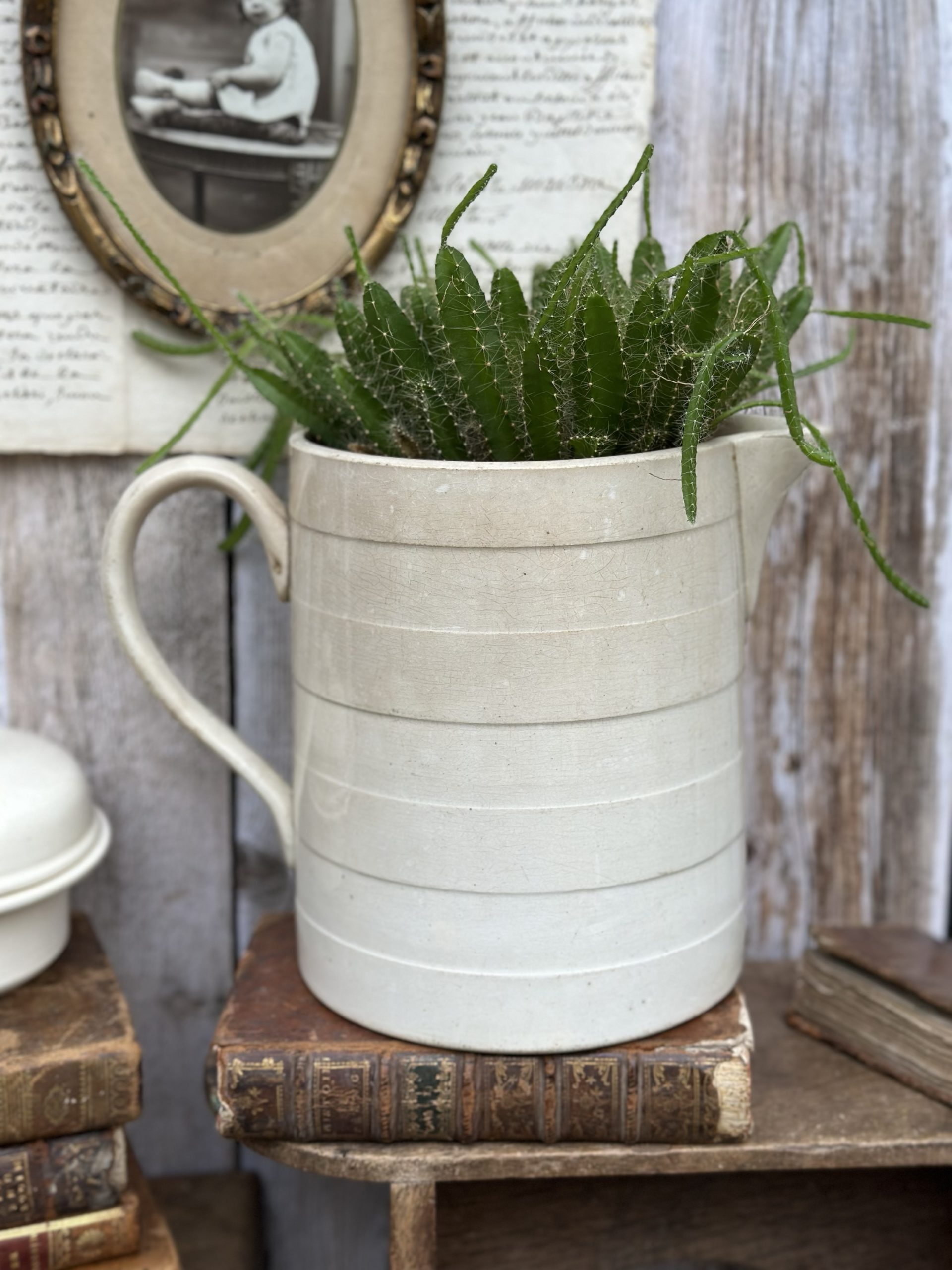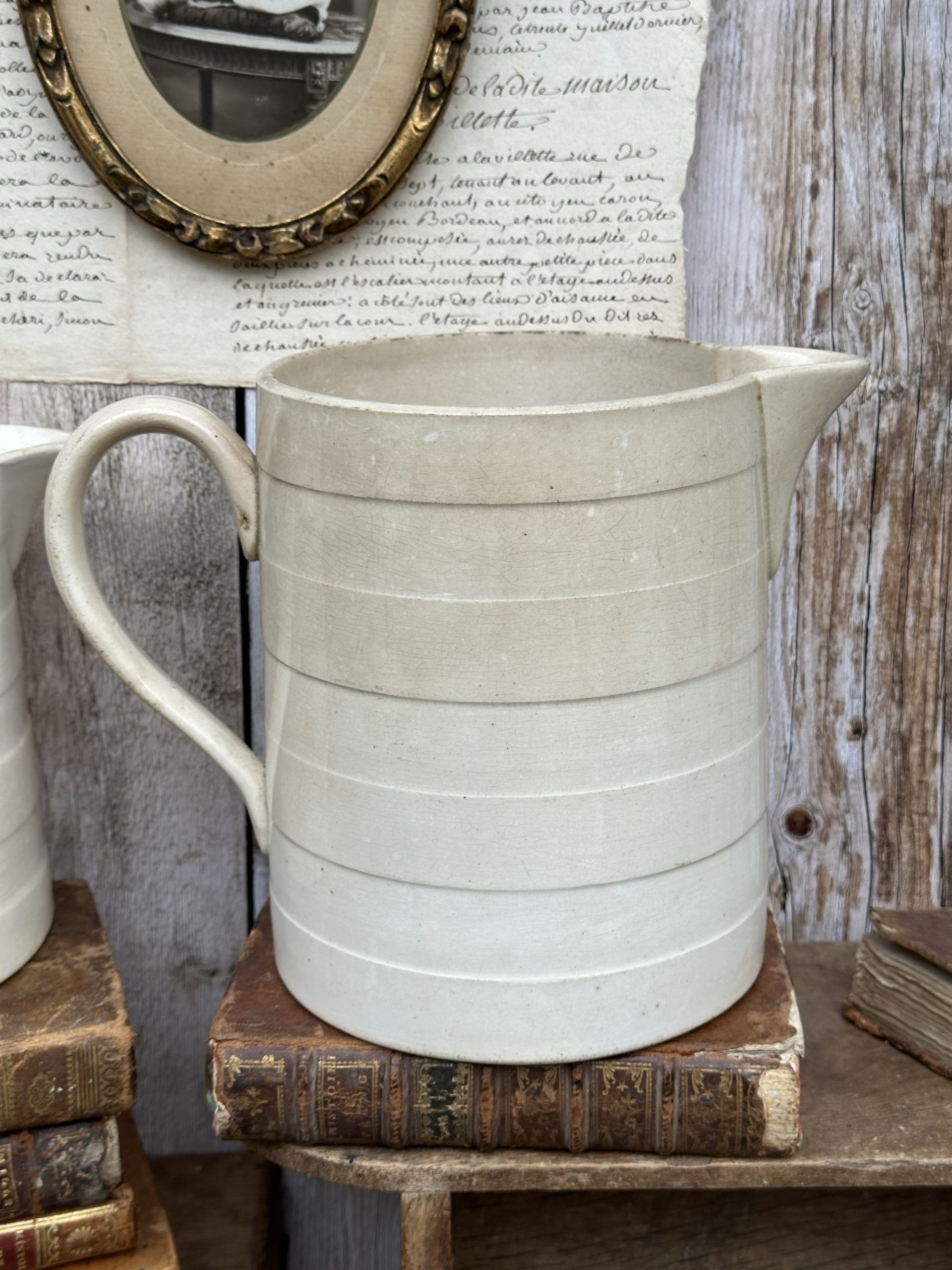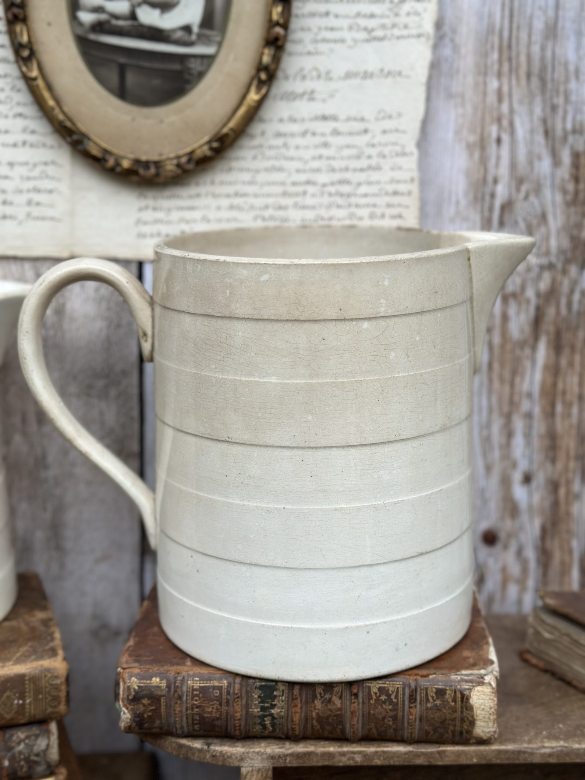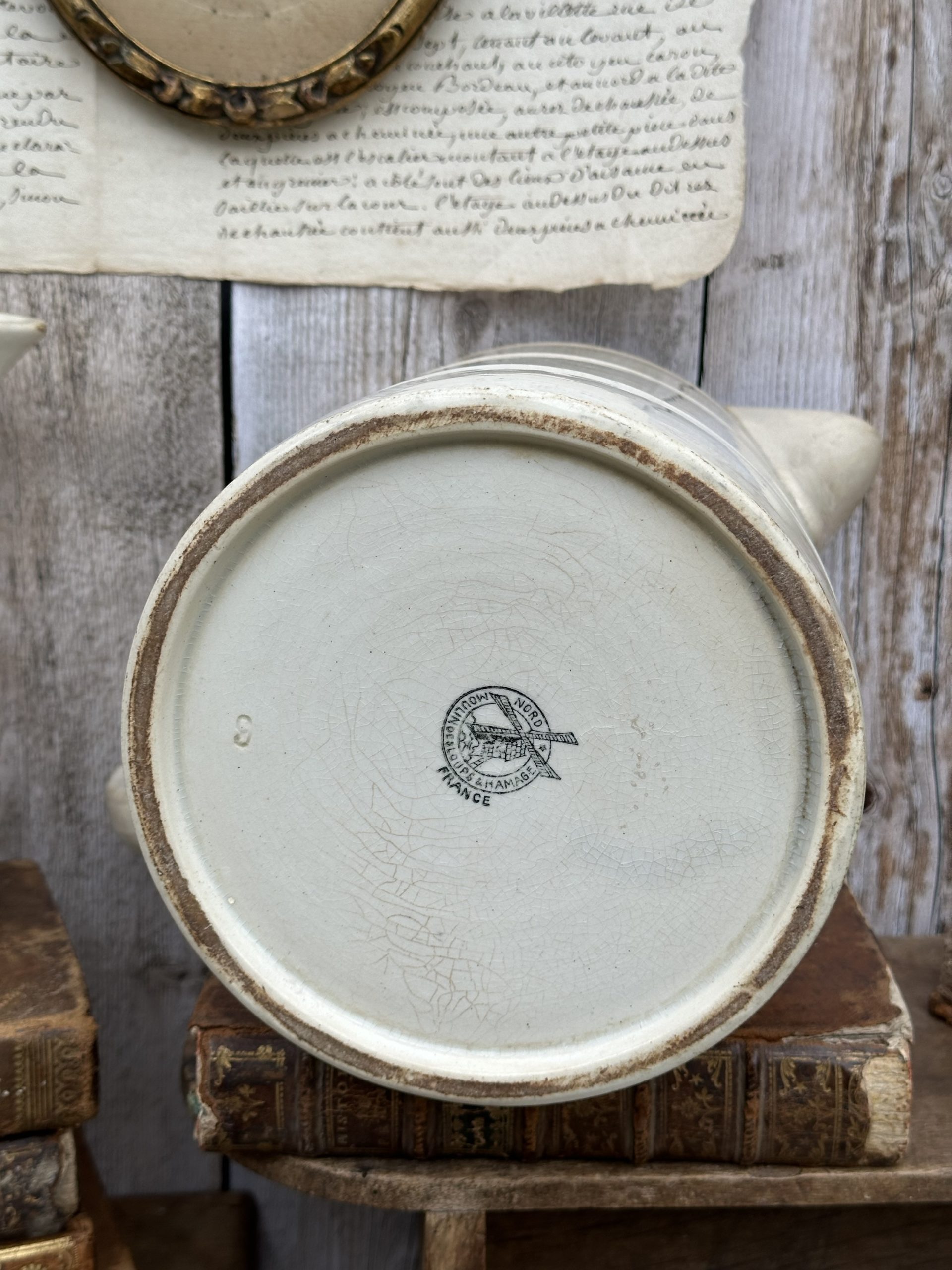Très grand broc / pichet patiné Moulin des Loups
