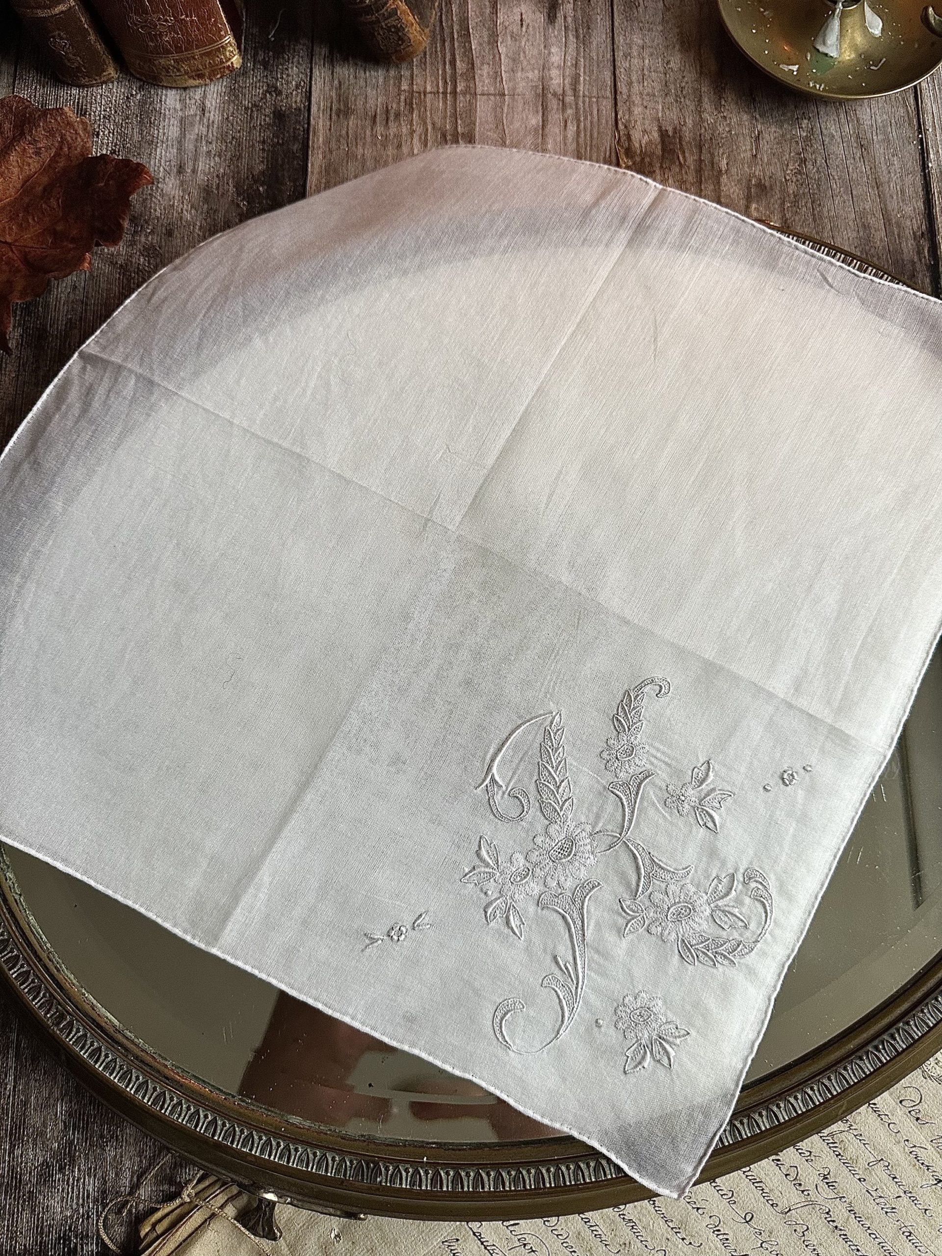 V. Mouchoir ancien brodé main – monogramme K