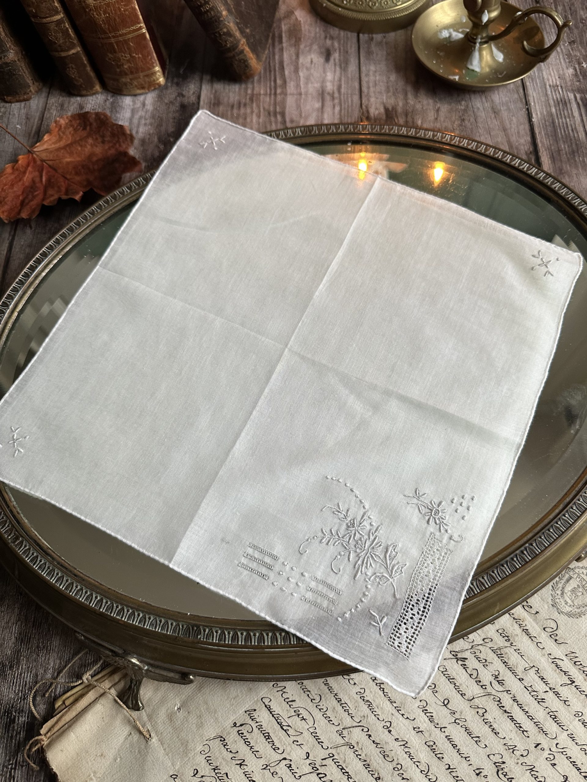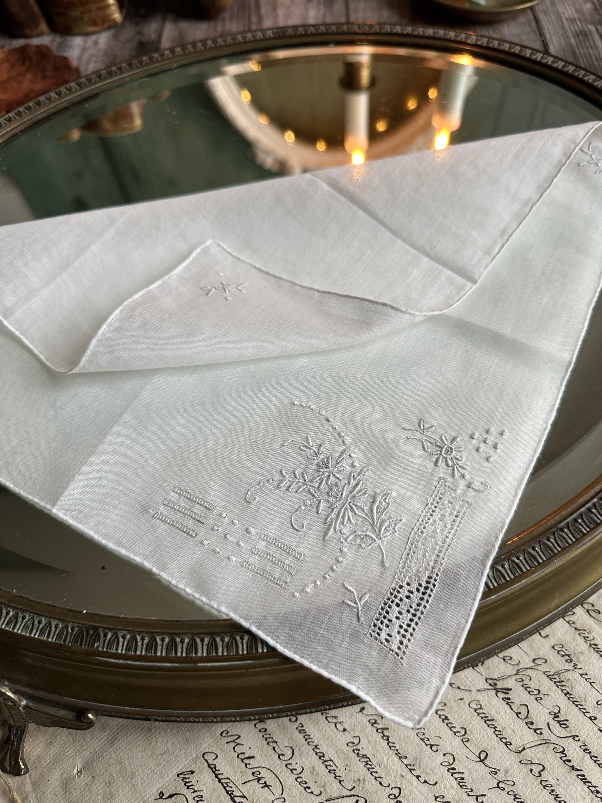 VIII. Deux mouchoirs anciens brodés main